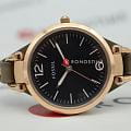 Европейское качество. Элегантный гладкий корпус из нержавеющей стали круглой формы, диаметр – 32 мм, толщина – 9 мм. Ремешок из натуральной кожи на простой ремешковой застежке. Минеральное стекло устойчивое к возникновению царапин. Аналоговый кварцевый механизм с тремя стрелками. Точность хода не хуже -10 +15 сек./в месяц. Текстурированный циферблат включает маркеры часа, люминесцентные стрелки. Водонепроницаемость до 5АТМ.
