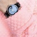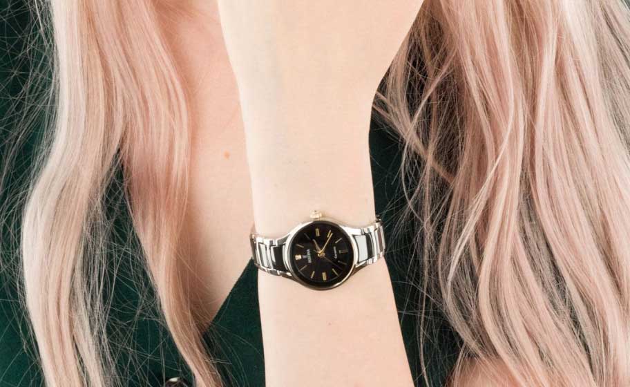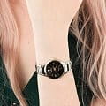 Яркий стиль и функциональность этих часов придутся по душе активной девушке. Кварцевый механизм с высокой точностью. Минеральное стеклоМинеральное стеклоМинеральное стекло представляет собой искусственно выращенный минерал кварца. Такое стекло отличается особой устойчивостью к повреждениям и царапинам. Уступает по некоторым качествам сапфировому стеклу. устойчивое к появлению царапин, обладающее высокой прозрачностью. Керамический неподвижный безельБезельВнешний ободок, закрепляющий стекло. В спортивных часах так называется поворотное кольцо с делениями на циферблате, выполняет роль таймера – замеряет отрезки времени на шкале. Неподвижный безель – элемент декора. Однонаправленно вращающийся безель на дайверских часах позволяет фиксировать моменты погружения и выныривания на поверхность.. Класс водозащиты: 50 метров, позволит защитить корпус от случайных брызг или капель дождя. Корпус часов изготовлен из нержавеющей стали. Браслет с керамическими вставками и с раскладной застёжкойРаскладная застёжкаТакой тип застёжки используется только на браслетах из металла. Она никогда не раскрывается полностью, происходит разделение на 2 и более частей. Раскладывающая застёжка снизит вероятность потери часов к минимуму..