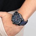 Часы-хронографХронографФункция позволяет измерять отрезки времени с особой точностью: часы, минуты, секунды. Верным признаком хронографа является наличие на циферблате 3 дополнительных окошек-счётчиков.. Кварцевый механизм с высокой точностью. Минеральное стеклоМинеральное стеклоМинеральное стекло представляет собой искусственно выращенный минерал кварца. Такое стекло отличается особой устойчивостью к повреждениям и царапинам. Уступает по некоторым качествам сапфировому стеклу. устойчивое к появлению царапин, обладающее высокой прозрачностью. Класс водозащиты: 100 метров, позволит плавать, нырять и заниматься другими водными видами спорта. Стрелки и метки с люминесцентным покрытиемЛюминесцентное покрытиеПозволяет считывать показания времени в темноте. Производители наносят на стрелки, часовые индексы, безель или поверхность циферблата светонакопительный состав, дающий холодное свечение.. Корпус часов изготовлен из нержавеющей стали c PVD-покрытиемPVDУльтратонкое покрытие наносится в технике вакуумного напыления, сочетает в себе нитрид титана особой прочности со слоем золота или оксида хрома. Несёт в себе декоративную или защитную функцию.. Кожаный ремешок с классической застежкой.