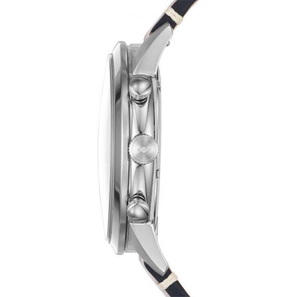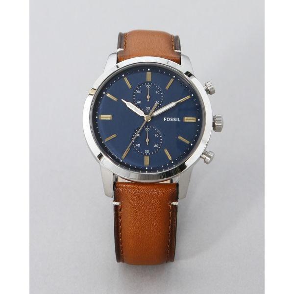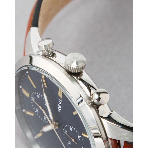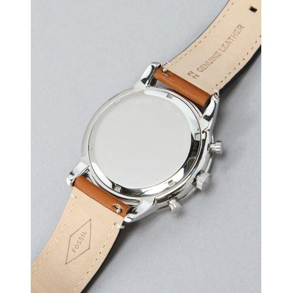 Наручные часы от популярного американского бренда Fossil - они будут замечательно смотреться как с повседневным стилем одежды, так и костюмом;  браслет: кожа; корпус: сталь; цвет браслета: коричневый; цвет корпуса: серебро; цвет циферблата: синий; ширина браслета: 22MM;