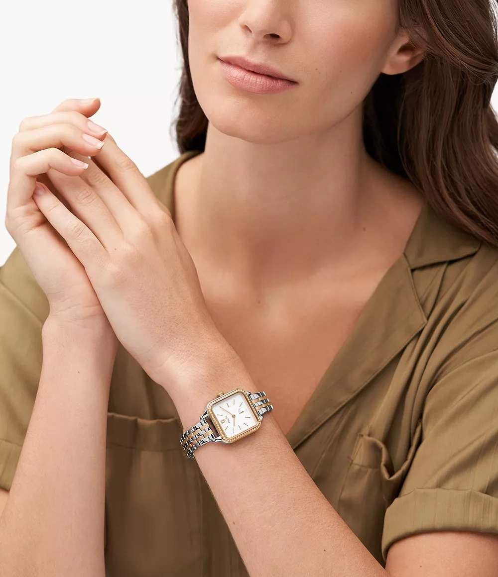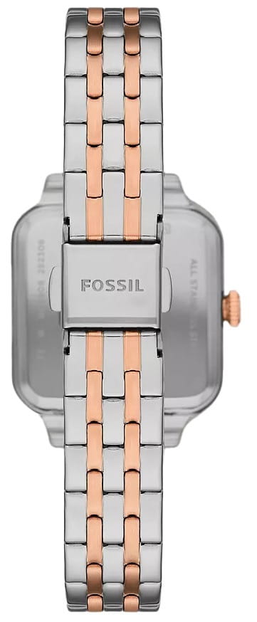 Часы Fossil BQ3907 представляют собой изысканное сочетание элегантности и функциональности, привнося в ваш образ утонченность и стиль. Эти часы, произведенные в США, оснащены надежным кварцевым механизмом, который обеспечивает точность и долговечность. Квадратный корпус размером 28x28 мм выполнен из нержавеющей стали. Белый циферблат, украшенный изящными метками в виде штрихов и римской цифрой XII, придает часам классический вид, а малая секундная стрелка на отдельном циферблате добавляет функциональность и оригинальность. Особое внимание привлекает безельБезельВнешний ободок, закрепляющий стекло. В спортивных часах так называется поворотное кольцо с делениями на циферблате, выполняет роль таймера – замеряет отрезки времени на шкале. Неподвижный безель – элемент декора. Однонаправленно вращающийся безель на дайверских часах позволяет фиксировать моменты погружения и выныривания на поверхность. с розовым IP-покрытиемIP-покрытиеМетод ионного напыления. Демонстрирует повышенную устойчивость к истиранию, окислению и химическим веществам. Под воздействием высокого давления и температуры около 1500°C молекулы металла надёжно соединяются с частицами корпуса часов., украшенный кристаллами, который придает часам особое сияние и неповторимый шарм. Стальной браслет с частичным розовым IP-покрытиемIP-покрытиеМетод ионного напыления. Демонстрирует повышенную устойчивость к истиранию, окислению и химическим веществам. Под воздействием высокого давления и температуры около 1500°C молекулы металла надёжно соединяются с частицами корпуса часов. и шириной 14 мм оснащен удобной раскладной застёжкойРаскладная застёжкаТакой тип застёжки используется только на браслетах из металла. Она никогда не раскрывается полностью, происходит разделение на 2 и более частей. Раскладывающая застёжка снизит вероятность потери часов к минимуму., что обеспечивает комфорт и надежность при носке. Минеральное стеклоМинеральное стеклоМинеральное стекло представляет собой искусственно выращенный минерал кварца. Такое стекло отличается особой устойчивостью к повреждениям и царапинам. Уступает по некоторым качествам сапфировому стеклу. защищает циферблат от царапин, сохраняя его первозданный вид. Водозащита 30WR позволяет не беспокоиться о случайных попаданиях воды, таких как дождь или брызги. Эти часы идеально подойдут для современных женщин, ценящих винтажный стиль и современную практичность.