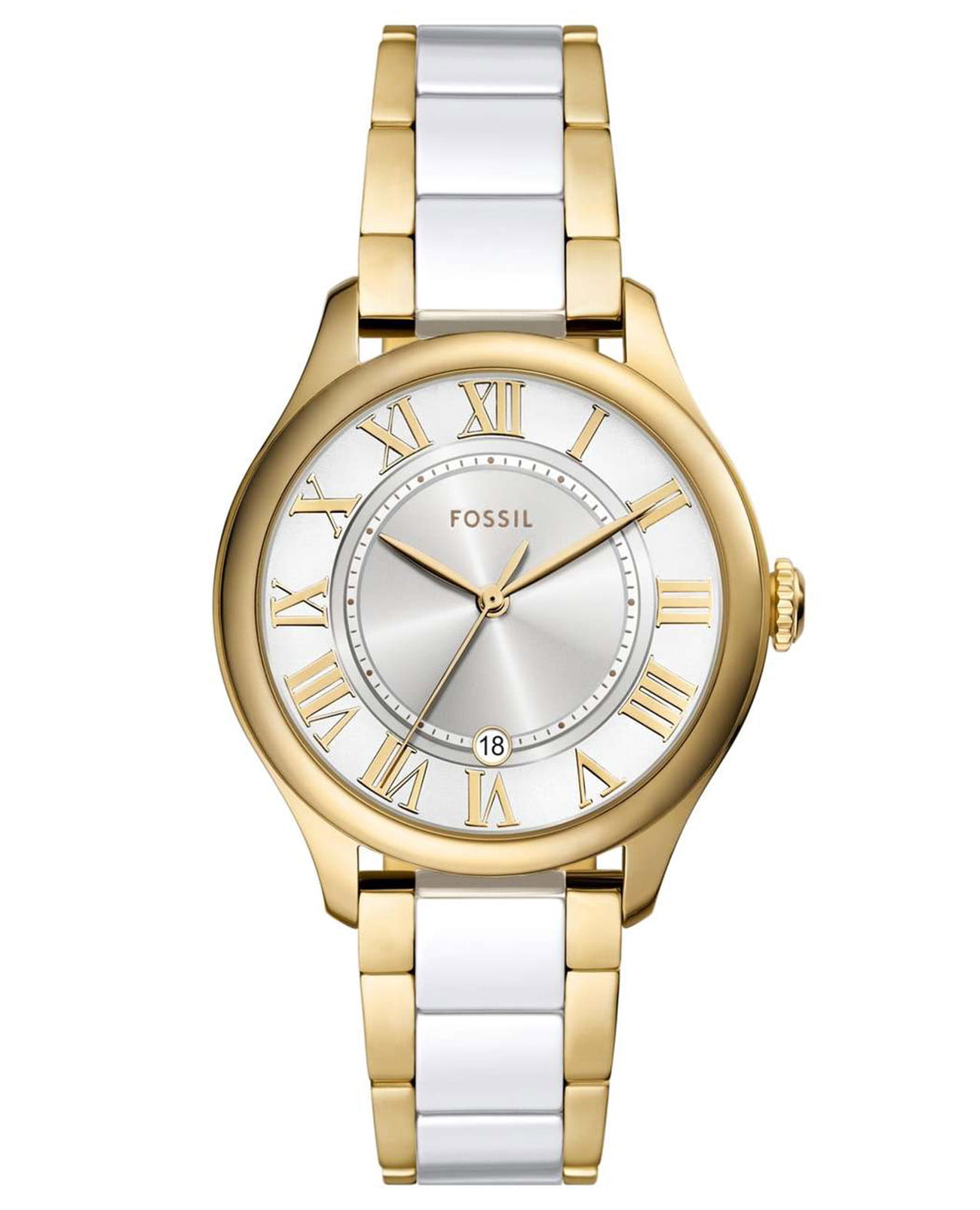 Женские кварцевые часы Fossil — это элегантный аксессуар, сочетающий стиль и надежность. Модель CE1131 выполнена в круглом корпусе диаметром 38 мм из нержавеющей стали с IP-покрытиемIP-покрытиеМетод ионного напыления. Демонстрирует повышенную устойчивость к истиранию, окислению и химическим веществам. Под воздействием высокого давления и температуры около 1500°C молекулы металла надёжно соединяются с частицами корпуса часов. цвета жёлтого золота. Циферблат белого цвета оформлен индексами и стрелками. Окошко даты расположено в положении 6 часов. Циферблат защищён минеральным стекломМинеральное стеклоМинеральное стекло представляет собой искусственно выращенный минерал кварца. Такое стекло отличается особой устойчивостью к повреждениям и царапинам. Уступает по некоторым качествам сапфировому стеклу.. Часы оснащены браслетом из керамики и стали с IP-покрытиемIP-покрытиеМетод ионного напыления. Демонстрирует повышенную устойчивость к истиранию, окислению и химическим веществам. Под воздействием высокого давления и температуры около 1500°C молекулы металла надёжно соединяются с частицами корпуса часов. на застёжке «бабочка» с кнопкамиЗастёжка "бабочка"Такой вид застёжки дополняется предохранителями, помогающими избежать случайного раскрытия браслета. Обладают изящным исполнением. . Водонепроницаемость 50 м позволяет использовать часы для плавания и повседневного ношения. Идеальный выбор для тех, кто ценит американское качество и безупречный дизайн.