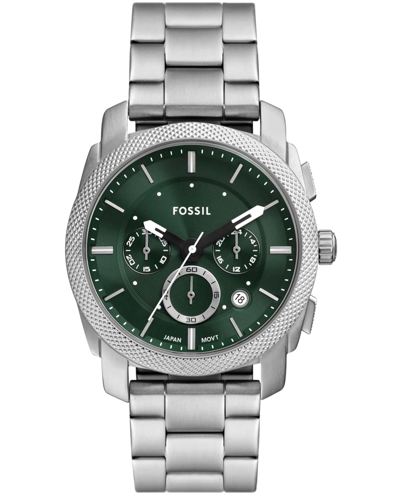 Часы Fossil Machine FS6079 идеально подойдут для тех, кто ценит классический стиль, дополненный современными деталями, и ищет аксессуар, способный подчеркнуть их индивидуальность и элегантность. Эти мужские наручные часы-хронографХронографФункция позволяет измерять отрезки времени с особой точностью: часы, минуты, секунды. Верным признаком хронографа является наличие на циферблате 3 дополнительных окошек-счётчиков. с секундомеромСекундомерСекундоме́р — прибор, способный измерять интервалы времени с точностью до долей секунды. производятся в США и оснащены надежным кварцевым механизмом, который обеспечивает точность и стабильность в работе. Корпус из нержавеющей стали, диаметром 42 мм гарантирует долговечность и придает часам стильный и современный вид. Циферблат, выполненный по технологии Sunray, создает эффект солнечных лучей, что добавляет глубину и изысканность дизайну. Метки в виде штрихов придают циферблату классический акцент, а рифленая заводная головка облегчает настройку времени. Стрелки и метки с люминесцентным покрытиемЛюминесцентное покрытиеПозволяет считывать показания времени в темноте. Производители наносят на стрелки, часовые индексы, безель или поверхность циферблата светонакопительный состав, дающий холодное свечение. позволяют легко считывать время даже в условиях низкой освещенности. Стальной браслет на раскладной застёжкеРаскладная застёжкаТакой тип застёжки используется только на браслетах из металла. Она никогда не раскрывается полностью, происходит разделение на 2 и более частей. Раскладывающая застёжка снизит вероятность потери часов к минимуму. обеспечивает комфортное ношение и надежную фиксацию на запястье. Водозащита уровня 50WR защищает механизм от случайных брызг, а минеральное стеклоМинеральное стеклоМинеральное стекло представляет собой искусственно выращенный минерал кварца. Такое стекло отличается особой устойчивостью к повреждениям и царапинам. Уступает по некоторым качествам сапфировому стеклу. оберегает циферблат от царапин и повреждений. 12-ти и 24-х часовой формат времени.