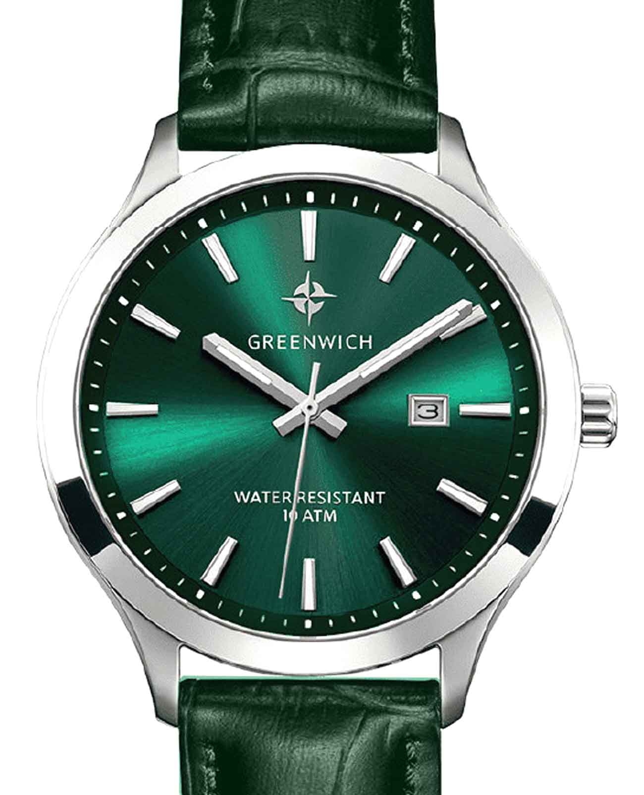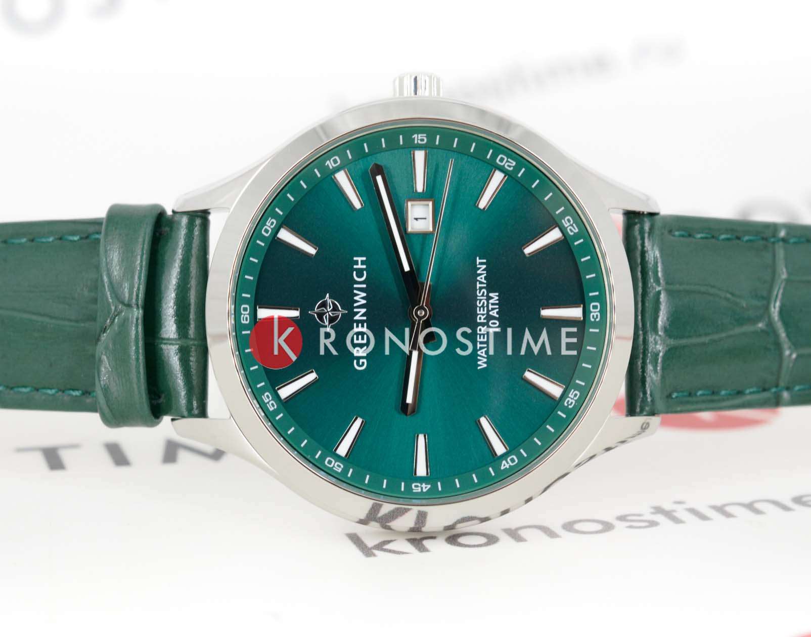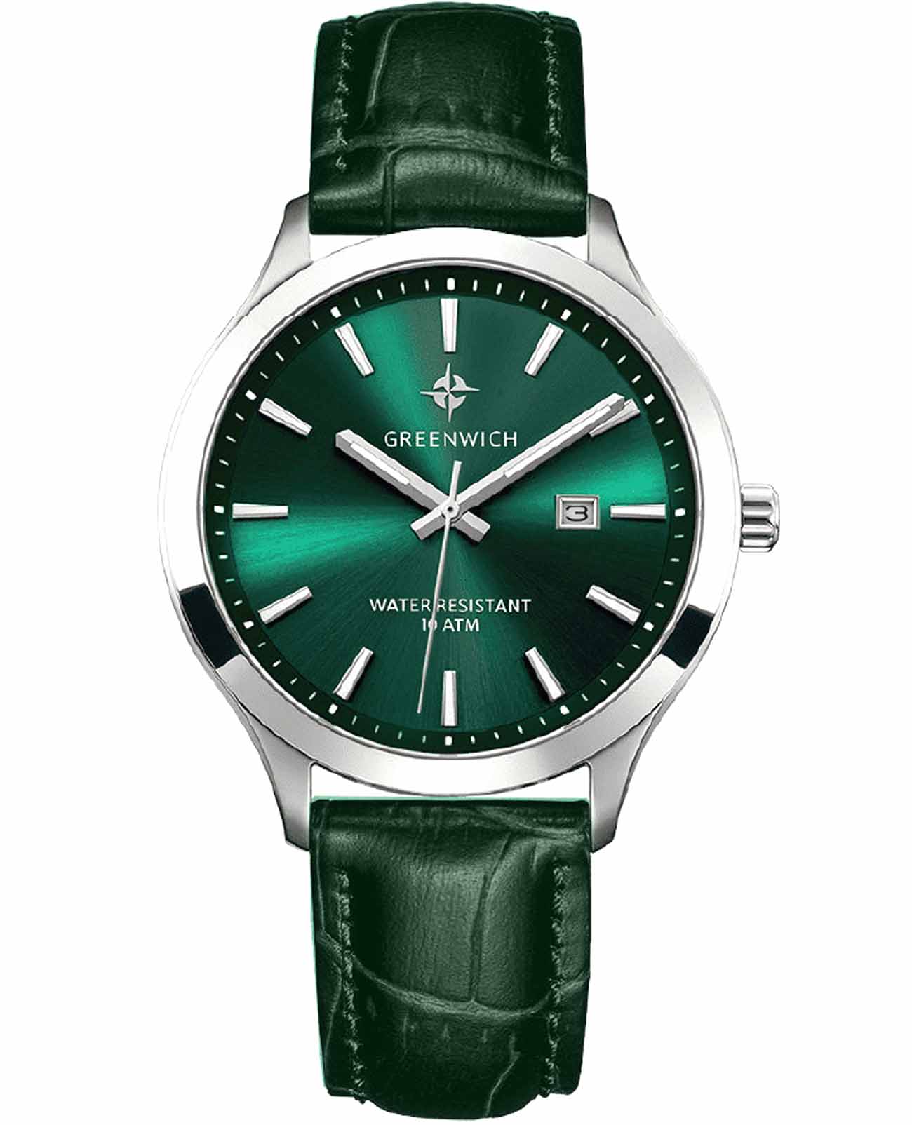 Мужские наручные часы Greenwich Helm GW 041.17.37 представляют собой классический вариант для повседневной носки. Корпус из нержавеющей стали диаметром 42 мм сбалансирован и элегантен. Минеральное стеклоМинеральное стеклоМинеральное стекло представляет собой искусственно выращенный минерал кварца. Такое стекло отличается особой устойчивостью к повреждениям и царапинам. Уступает по некоторым качествам сапфировому стеклу. защищает циферблат от царапин и обеспечивает отличную читаемость при любом освещении. Люминесцентное покрытиеЛюминесцентное покрытиеПозволяет считывать показания времени в темноте. Производители наносят на стрелки, часовые индексы, безель или поверхность циферблата светонакопительный состав, дающий холодное свечение. стрелок и меток позволит следить за временем даже в полной темноте. Кожаный ремешок на стандартной застёжке. Окошко даты находится в положении 3 часа. Класс водозащиты: 100 метров, позволит плавать, нырять и заниматься другими водными видами спорта. На заводной головке и задней крышке расположился логотип: стилизованное изображение розы ветров. На задней крышке — гравировка корабля, идущего навстречу приключениям.