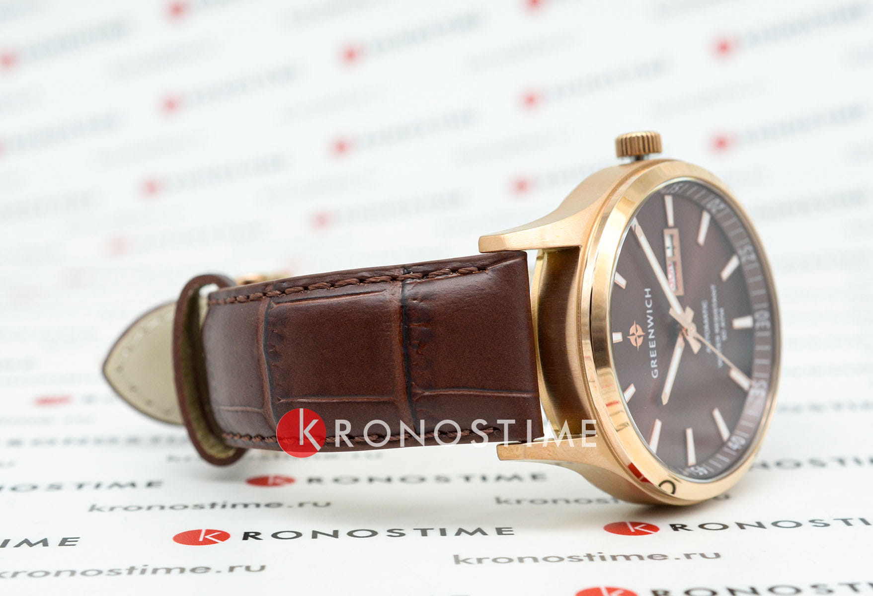 Часы Greenwich Good Luck GW 054.42.32 — это мужская модель, сочетающая элегантность и классический дизайн. Корпус диаметром 43 мм выполнен из нержавеющей стали с PVD-покрытиемPVDУльтратонкое покрытие наносится в технике вакуумного напыления, сочетает в себе нитрид титана особой прочности со слоем золота или оксида хрома. Несёт в себе декоративную или защитную функцию. из розового золота, сочетающим зеркальную полировку на безеле и матовую отделку на остальных частях корпуса. Коричневый циферблат с полировкой оснащён накладными часовыми метками и крупными стрелками с люминесцентным покрытием, обеспечивающим хорошую читаемость в условиях низкой освещённости. Циферблат защищён минеральным стекломМинеральное стеклоМинеральное стекло представляет собой искусственно выращенный минерал кварца. Такое стекло отличается особой устойчивостью к повреждениям и царапинам. Уступает по некоторым качествам сапфировому стеклу.. Модель оснащена автоматическим механизмом TMI с функциями отображения даты и дня недели. Запас хода составляет около 40 часов. Прозрачная задняя крышка позволяет наблюдать за работой механизма, на роторе которого выгравирован силуэт парусника — символ английских мореходов и название серии. Водозащита до 10 атмосфер (100 метров) делает часы подходящими для плавания и других водных активностей. Ремешок из натуральной коричневой кожи с прошивкой обеспечивает комфортное ношение и надёжную фиксацию на запястье. Эта модель идеально подойдёт для тех, кто ценит сочетание классического стиля и современных технологий.
