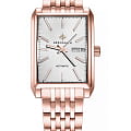 Английские механические наручные мужские часы с автоподзаводом и с минеральным стекломМинеральное стеклоМинеральное стекло представляет собой искусственно выращенный минерал кварца. Такое стекло отличается особой устойчивостью к повреждениям и царапинам. Уступает по некоторым качествам сапфировому стеклу. Greenwich Caravel GW 564.40.13, представляют собой классический вариант для повседневной носки. Корпус и браслет часов выполнен из нержавеющей стали с PVD-покрытиемPVDУльтратонкое покрытие наносится в технике вакуумного напыления, сочетает в себе нитрид титана особой прочности со слоем золота или оксида хрома. Несёт в себе декоративную или защитную функцию.. Окошко даты и дня недели находится в положении 3 часа. Стрелки с люминесцентным покрытиемЛюминесцентное покрытиеПозволяет считывать показания времени в темноте. Производители наносят на стрелки, часовые индексы, безель или поверхность циферблата светонакопительный состав, дающий холодное свечение.. 50 метров, позволит защитить корпус от случайных брызг или капель дождя.