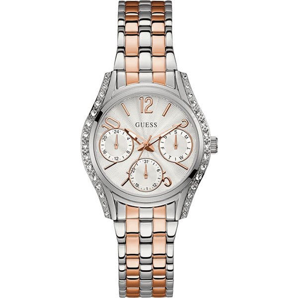 Классические наручные женские часы. Корпус часов выполнен из высокопрочной стали с антикоррозийными свойствами . Дизайн циферблата и стрелок исполнен в строгом и лаконичном стиле бренда Guess. Часы укомплектованы минеральным стеклом, устойчивым к появлению царапин и удерживаются на руке браслетом из нержавеющей стали. Часы станут прекрасным дополнением к образу.