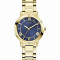 Наручные часы Guess Dress Steel GW0404L4 — изысканный аксессуар, сочетающий в себе элегантность и современный стиль. Круглый корпус из стали с золотистым IP-покрытиемIP-покрытиеМетод ионного напыления. Демонстрирует повышенную устойчивость к истиранию, окислению и химическим веществам. Под воздействием высокого давления и температуры около 1500°C молекулы металла надёжно соединяются с частицами корпуса часов. придает часам прочность и устойчивость к износу, обеспечивая их привлекательный внешний вид на долгие годы. Циферблат глубокого синего цвета выполнен по технологии Sunray, имитирующей солнечные лучи, и украшен метками в виде штрихов и римских цифр, что придает часам утонченность и изысканность. Минеральное стеклоМинеральное стеклоМинеральное стекло представляет собой искусственно выращенный минерал кварца. Такое стекло отличается особой устойчивостью к повреждениям и царапинам. Уступает по некоторым качествам сапфировому стеклу. защищает циферблат от царапин и других повреждений. Люминесцентное покрытиеЛюминесцентное покрытиеПозволяет считывать показания времени в темноте. Производители наносят на стрелки, часовые индексы, безель или поверхность циферблата светонакопительный состав, дающий холодное свечение. на стрелках обеспечивает отличную видимость в темноте. БезельБезельВнешний ободок, закрепляющий стекло. В спортивных часах так называется поворотное кольцо с делениями на циферблате, выполняет роль таймера – замеряет отрезки времени на шкале. Неподвижный безель – элемент декора. Однонаправленно вращающийся безель на дайверских часах позволяет фиксировать моменты погружения и выныривания на поверхность. дополнен декоративными винтами, которые добавляют аксессуару оригинальность и характер. Рифленая заводная головка обеспечивает удобство в использовании и подчеркивает внимание к деталям. Часы оснащены стальным браслетом с золотистым IP-покрытиемIP-покрытиеМетод ионного напыления. Демонстрирует повышенную устойчивость к истиранию, окислению и химическим веществам. Под воздействием высокого давления и температуры около 1500°C молекулы металла надёжно соединяются с частицами корпуса часов., который обеспечивает надежность и комфорт.Раскладная застежкаРаскладная застёжкаТакой тип застёжки используется только на браслетах из металла. Она никогда не раскрывается полностью, происходит разделение на 2 и более частей. Раскладывающая застёжка снизит вероятность потери часов к минимуму. гарантирует легкость и безопасность при ношении. Водозащита уровня 30WR защищает часы от случайных брызг, делая их подходящими для повседневного использования.