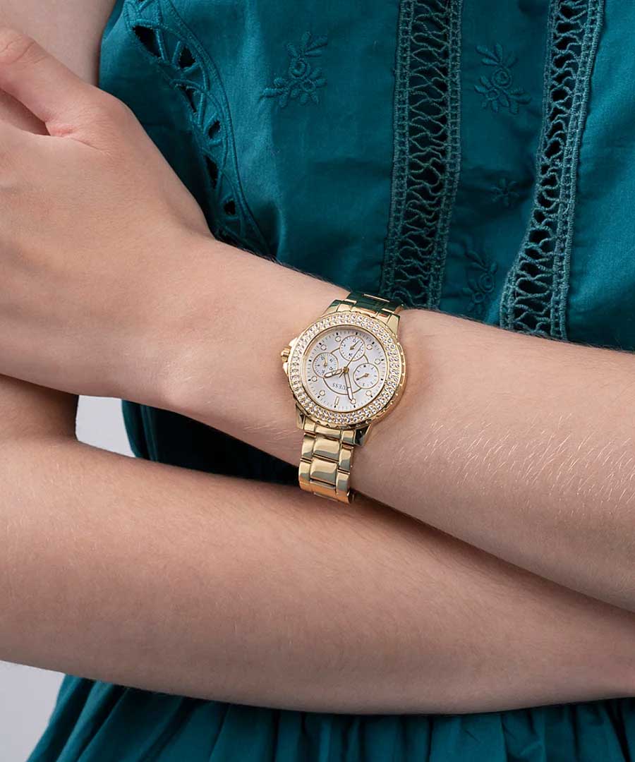 Женские наручные часы Guess Sport Steel GW0410L2, кварцевый механизм с высокой точностью. Класс водозащиты: 30 метров, позволит защитить корпус от случайных брызг или капель дождя. Корпус часов изготовлен из стали, золотистого цвета.