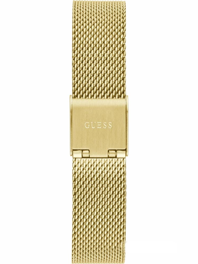 Женские наручные часы Guess GW0550L2 с минеральным стекломМинеральное стеклоМинеральное стекло представляет собой искусственно выращенный минерал кварца. Такое стекло отличается особой устойчивостью к повреждениям и царапинам. Уступает по некоторым качествам сапфировому стеклу., кварцевый механизм с высокой точностью. Класс водозащиты: 30 метров, позволит защитить корпус от случайных брызг или капель дождя. Корпус часов изготовлен из стали с IP-покрытиемIP-покрытиеМетод ионного напыления. Демонстрирует повышенную устойчивость к истиранию, окислению и химическим веществам. Под воздействием высокого давления и температуры около 1500°C молекулы металла надёжно соединяются с частицами корпуса часов.. Браслет с раскладной застёжкойРаскладная застёжкаТакой тип застёжки используется только на браслетах из металла. Она никогда не раскрывается полностью, происходит разделение на 2 и более частей. Раскладывающая застёжка снизит вероятность потери часов к минимуму. с IP-покрытиемIP-покрытиеМетод ионного напыления. Демонстрирует повышенную устойчивость к истиранию, окислению и химическим веществам. Под воздействием высокого давления и температуры около 1500°C молекулы металла надёжно соединяются с частицами корпуса часов.. Корпус и циферблат украшены кристаллами. Круглый стальной корпус, украшенный кристаллами. Циферблат выполнен по технологии Sunray (солнечные лучи). Браслет миланского плетения.