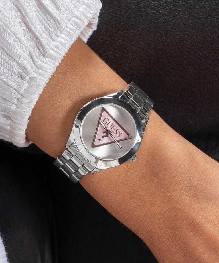 Женские наручные часы с минеральным стекломМинеральное стеклоМинеральное стекло представляет собой искусственно выращенный минерал кварца. Такое стекло отличается особой устойчивостью к повреждениям и царапинам. Уступает по некоторым качествам сапфировому стеклу. Guess GW0675L1, кварцевый механизм с высокой точностью. Класс водозащиты: 30 метров, позволит защитить корпус от случайных брызг или капель дождя. Корпус и браслет часов изготовлены из нержавеющей стали 316L.