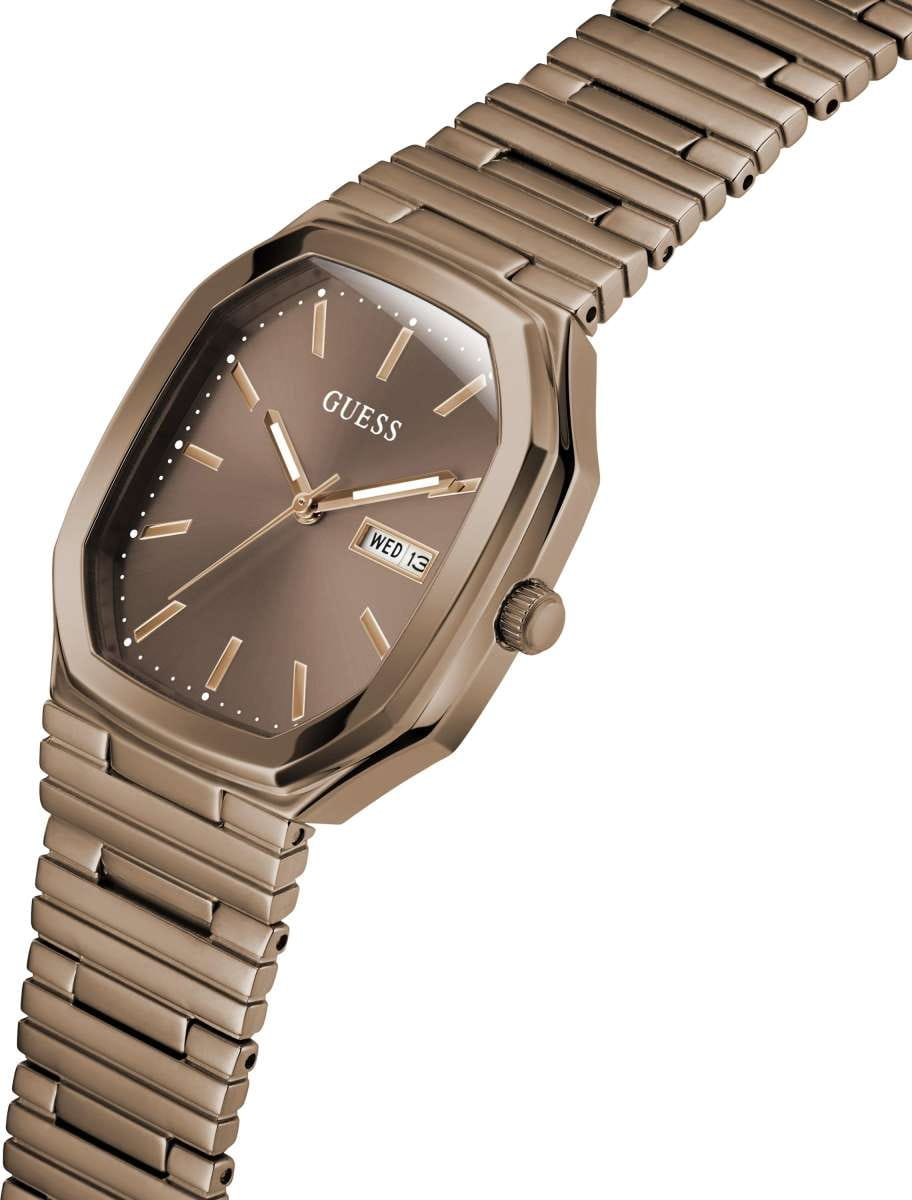 Мужские наручные часы Guess Dress Oliver GW0978G3 – это сочетание элегантности и современного стиля. Изысканные часы оснащены надежным кварцевым механизмом, который обеспечивает точность хода. Корпус часов диаметром 35 мм и толщиной 8 мм выполнен из нержавеющей стали с IP-покрытиемIP-покрытиеМетод ионного напыления. Демонстрирует повышенную устойчивость к истиранию, окислению и химическим веществам. Под воздействием высокого давления и температуры около 1500°C молекулы металла надёжно соединяются с частицами корпуса часов., придающий модели особый характер. Циферблат оснащен метками в виде штрихов. Дата вынесена на отдельном окошке в позиции 3 часов. Люминесцентное покрытиеЛюминесцентное покрытиеПозволяет считывать показания времени в темноте. Производители наносят на стрелки, часовые индексы, безель или поверхность циферблата светонакопительный состав, дающий холодное свечение. на стрелках обеспечивает отличную видимость в темноте. Стальной браслет с IP-покрытиемIP-покрытиеМетод ионного напыления. Демонстрирует повышенную устойчивость к истиранию, окислению и химическим веществам. Под воздействием высокого давления и температуры около 1500°C молекулы металла надёжно соединяются с частицами корпуса часов. с раскладной застежкойРаскладная застёжкаТакой тип застёжки используется только на браслетах из металла. Она никогда не раскрывается полностью, происходит разделение на 2 и более частей. Раскладывающая застёжка снизит вероятность потери часов к минимуму. гарантирует комфортное ношение и надежную фиксацию. Минеральное стеклоМинеральное стеклоМинеральное стекло представляет собой искусственно выращенный минерал кварца. Такое стекло отличается особой устойчивостью к повреждениям и царапинам. Уступает по некоторым качествам сапфировому стеклу. защищает циферблат от царапин, а водозащита 30WR предохраняет часы от случайных брызг. Эта модель станет отличным выбором для тех, кто ценит стиль и функциональность в одном аксессуаре.