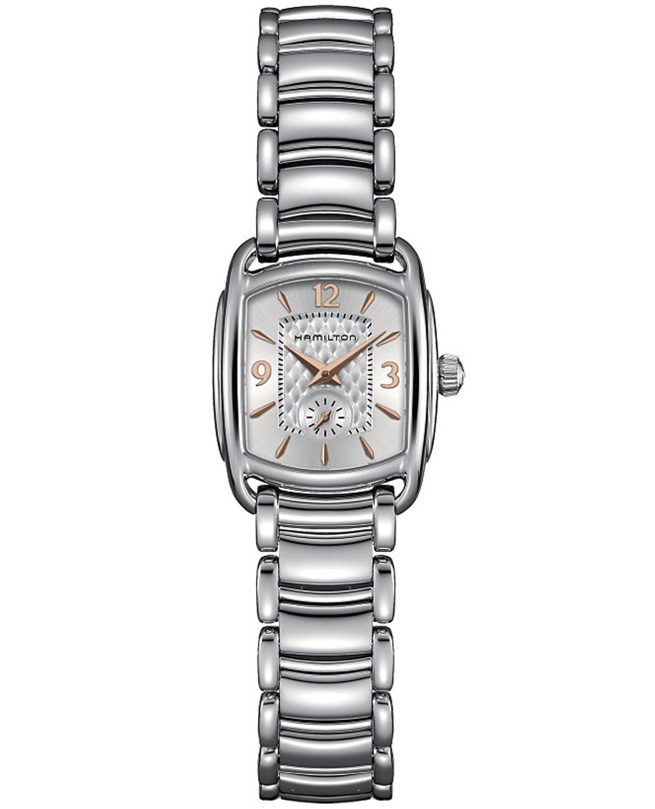 Женские наручные часы Hamilton American Classics Lady H12351155. Корпус и браслет часов изготовлены из нержавеющей стали. Сапфировое стеклоСапфировое стеклоПрочный и надёжный материал из кристалла сапфира синтетического происхождения, характеризующийся особой твёрдостью и устойчивостью к царапинам и повреждениям. с антибликовым покрытием. Стальной браслет на застёжке-бабочке с кнопкамиЗастёжка "бабочка"Такой вид застёжки дополняется предохранителями, помогающими избежать случайного раскрытия браслета. Обладают изящным исполнением. . Уровень влагозащиты: 50 метров, позволит защитить корпус от случайных брызг или капель дождя.