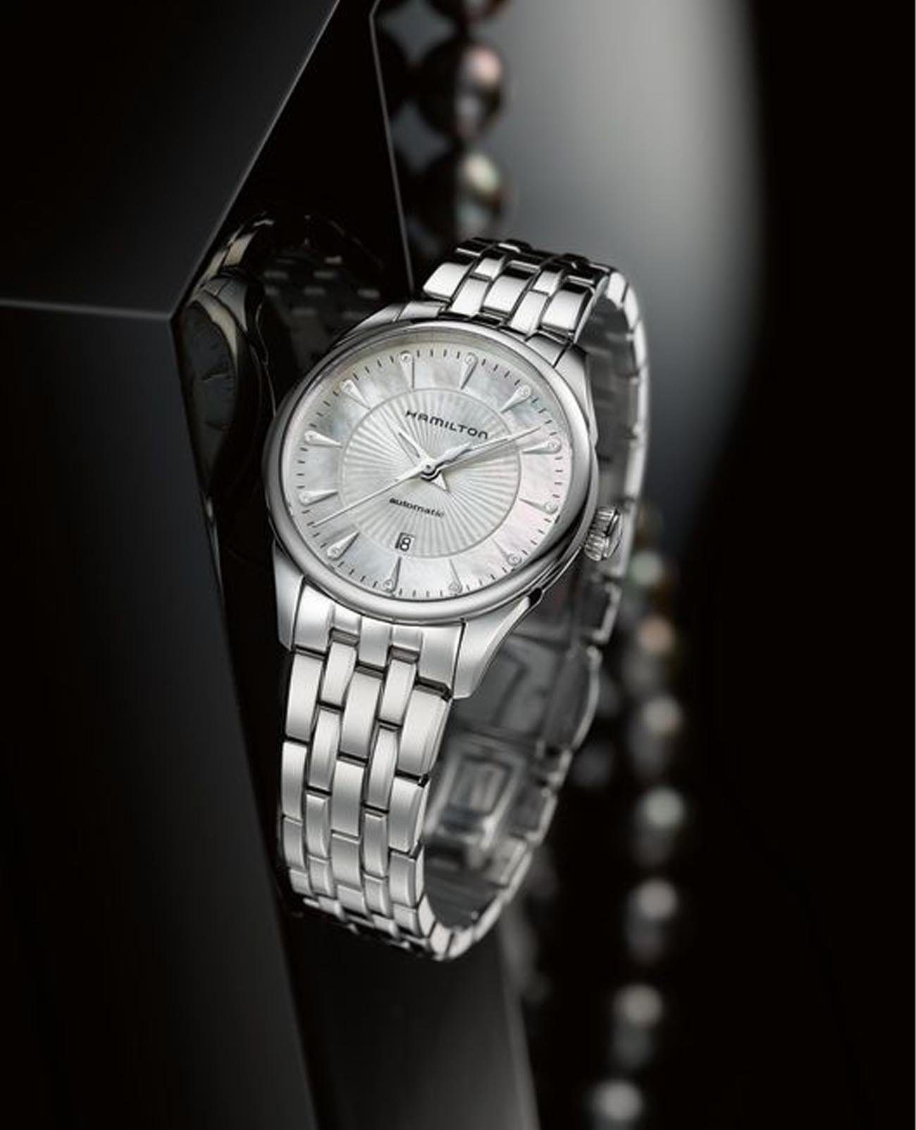 Женские механические часы Hamilton Jazzmaster Lady Auto H42215151 с автоматическим подзаводом. Корпус и браслет изготовлены из нержавеющей стали. Сапфировое стеклоСапфировое стеклоПрочный и надёжный материал из кристалла сапфира синтетического происхождения, характеризующийся особой твёрдостью и устойчивостью к царапинам и повреждениям. с антибликовым покрытием. Стальной браслет на застёжке-бабочке с кнопкамиЗастёжка "бабочка"Такой вид застёжки дополняется предохранителями, помогающими избежать случайного раскрытия браслета. Обладают изящным исполнением. . Стрелки с люминесцентным покрытиемЛюминесцентное покрытиеПозволяет считывать показания времени в темноте. Производители наносят на стрелки, часовые индексы, безель или поверхность циферблата светонакопительный состав, дающий холодное свечение.. Класс водозащиты: 50 метров, позволит защитить корпус от случайных брызг или капель дождя. Окошко даты находится в положении 6 часов.