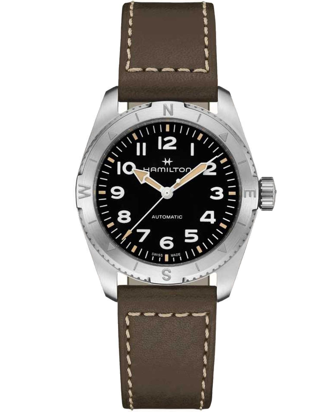 Мужские наручные часы Hamilton Khaki Field Expedition Auto H70225830 с автоматическим механизмом. Корпус часов изготовлен из нержавеющей стали. Практичный кожаный ремешок на стандартной застёжке. Сапфировое стеклоСапфировое стеклоПрочный и надёжный материал из кристалла сапфира синтетического происхождения, характеризующийся особой твёрдостью и устойчивостью к царапинам и повреждениям. с антибликовым покрытием. Стрелки и метки с люминесцентным покрытиемЛюминесцентное покрытиеПозволяет считывать показания времени в темноте. Производители наносят на стрелки, часовые индексы, безель или поверхность циферблата светонакопительный состав, дающий холодное свечение.. Уровень влагозащиты: 100 метров, позволит плавать, нырять и заниматься другими водными видами спорта.