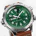 Мужские наручные часы Hamilton Khaki Aviation X-Wind Day Date Auto 45mm H77735560 сочетают в себе спортивный стиль и функциональность для профессионалов авиации. Модель обладает круглым корпусом диаметром 45 мм, изготовленным из нержавеющей стали, что обеспечивает высокую устойчивость к внешним воздействиям. Ремешок выполнен из кожи на стандартной застежке, гарантирующей комфортное ношение и безопасность. Зеленый циферблат оснащен крупными цифрами и стрелками с люминесцентным покрытиемЛюминесцентное покрытиеПозволяет считывать показания времени в темноте. Производители наносят на стрелки, часовые индексы, безель или поверхность циферблата светонакопительный состав, дающий холодное свечение. Super-LumiNova®, обеспечивающим превосходную видимость в темноте. Для защиты используется сапфировое стеклоСапфировое стеклоПрочный и надёжный материал из кристалла сапфира синтетического происхождения, характеризующийся особой твёрдостью и устойчивостью к царапинам и повреждениям., которое эффективно противостоит царапинам. Часы работают на автоматическом швейцарском механизме H-30, что обеспечивает точное время без необходимости подзаводки. Механизм с пружиной баланса Nivachron™Nivachron™Специально разработанный инновационный сплав Nivachron™ повышает устойчивость часов к воздействию магнитных полей. гарантирует точность хода, устойчивость к магнитным полям. Модель также оснащена функциями даты и дня недели, а также уникальным калькулятором угла сноса, который позволяет пилотам рассчитывать боковой ветер. Водонепроницаемость часов достигает 10 атмосфер (100 метров), что делает их подходящими для повседневного использования и активного отдыха. Это сочетание высокой прочности, точности и изысканного дизайна для уверенных в себе мужчин.
