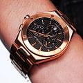 Мужские кварцевые наручные часы-хронографХронографФункция позволяет измерять отрезки времени с особой точностью: часы, минуты, секунды. Верным признаком хронографа является наличие на циферблате 3 дополнительных окошек-счётчиков. Herbelin Cap Camarat 37645BPR14 – отражающий идеальное сочетание современного дизайна, надёжности и функциональности. Элегантный облик станет превосходным завершением образа, наделив его индивидуальным характером. Корпус из нержавеющей стали с PVD-покрытиемPVDУльтратонкое покрытие наносится в технике вакуумного напыления, сочетает в себе нитрид титана особой прочности со слоем золота или оксида хрома. Несёт в себе декоративную или защитную функцию. цвета розового золота, диаметром 42 мм, идеально сбалансирован и элегантен. Сапфировое стеклоСапфировое стеклоПрочный и надёжный материал из кристалла сапфира синтетического происхождения, характеризующийся особой твёрдостью и устойчивостью к царапинам и повреждениям. защищает циферблат от царапин и устойчивое к механическим повреждениям. БезельБезельВнешний ободок, закрепляющий стекло. В спортивных часах так называется поворотное кольцо с делениями на циферблате, выполняет роль таймера – замеряет отрезки времени на шкале. Неподвижный безель – элемент декора. Однонаправленно вращающийся безель на дайверских часах позволяет фиксировать моменты погружения и выныривания на поверхность. украшен винтами, заводная головка с защитой. Окошко даты находится в положении 6 часов. Стрелки и метки с люминесцентным покрытиемЛюминесцентное покрытиеПозволяет считывать показания времени в темноте. Производители наносят на стрелки, часовые индексы, безель или поверхность циферблата светонакопительный состав, дающий холодное свечение.. Стальной браслет с PVD-покрытиемPVDУльтратонкое покрытие наносится в технике вакуумного напыления, сочетает в себе нитрид титана особой прочности со слоем золота или оксида хрома. Несёт в себе декоративную или защитную функцию. на застёжке-бабочке с кнопкамиЗастёжка "бабочка"Такой вид застёжки дополняется предохранителями, помогающими избежать случайного раскрытия браслета. Обладают изящным исполнением. обеспечивает комфортное ношение. Водозащита 100 метров позволит плавать, нырять и заниматься другими водными видами спорта. Эта модель – отличный выбор для тех, кто ищет сочетание стиля, качества и функциональности. Часы станут не только полезным аксессуаром, но и выразительным элементом вашего имиджа.