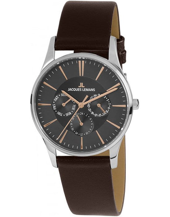 Наручные часы Jacques Lemans призваны ставить на первое место индивидуальный стиль владельца, классическая элегантность придётся по вкусу каждому. Брендовые часы привлекают минималистичным дизайном, отсутствие вычурности и обилия декорирующих элементов делают модель лучшим решением для ежедневного применения. Аксессуар можно носить с деловыми костюмами и повседневной одеждой, он органично сочетается как с классическими брюками, так и с рваными джинсами. Это настоящее часовое искусство высокого качества, часы считаются актуальным вариантом на все времена и с идеальной точностью показывают время благодаря надёжному японскому механизму.