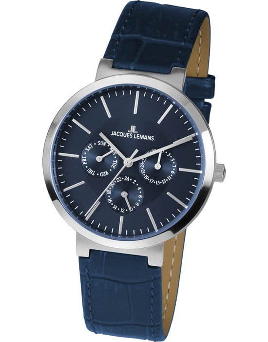 Наручные часы Jacques Lemans призваны ставить на первое место индивидуальный стиль владельца, классическая элегантность придётся по вкусу каждому. Брендовые часы привлекают минималистичным дизайном, отсутствие вычурности и обилия декорирующих элементов делают модель лучшим решением для ежедневного применения. Аксессуар можно носить с деловыми костюмами и повседневной одеждой, он органично сочетается как с классическими брюками, так и с рваными джинсами. Это настоящее часовое искусство высокого качества, часы считаются актуальным вариантом на все времена и с идеальной точностью показывают время благодаря надёжному японскому механизму.