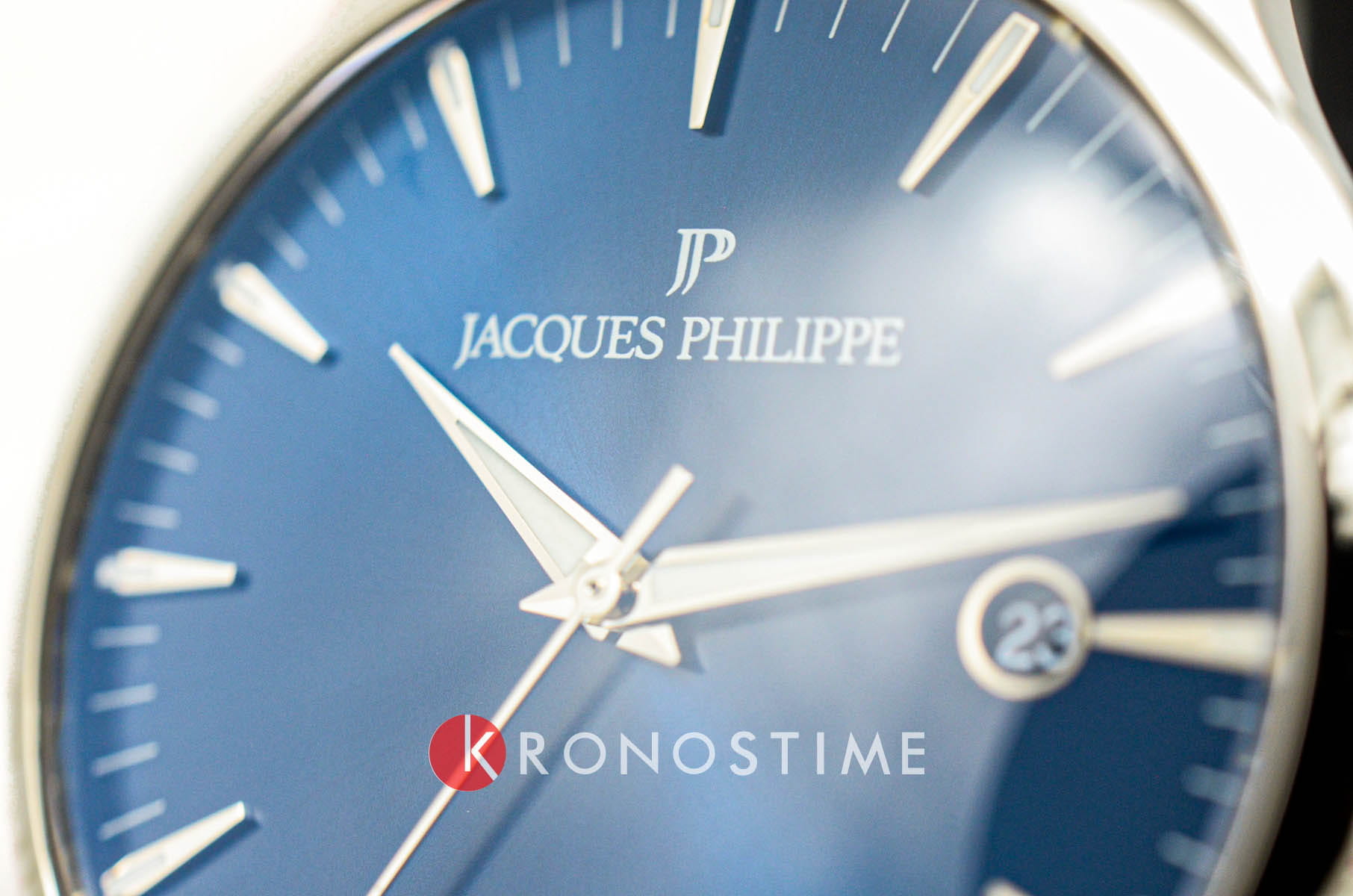 Jacques Philippe JPQGS661336 — стильные мужские часы в классическом формате с акцентом на надёжность и элегантность. Корпус круглой формы диаметром 40 мм из нержавеющей стали отличается утонченным силуэтом при толщине примерно 12 мм, обеспечивая комфорт при длительном ношении . Циферблат оформлен лаконично: тонкие стрелки и минималистичные часовые метки с люминесцентным покрытиемЛюминесцентное покрытиеПозволяет считывать показания времени в темноте. Производители наносят на стрелки, часовые индексы, безель или поверхность циферблата светонакопительный состав, дающий холодное свечение. подчёркивают строгий характер модели. Встроенная функция отображения даты придаёт часам практичность без лишнего визуального нагромождения. Поверхность защищает сапфировое стеклоСапфировое стеклоПрочный и надёжный материал из кристалла сапфира синтетического происхождения, характеризующийся особой твёрдостью и устойчивостью к царапинам и повреждениям. — устойчивое к царапинам и бликам. Внутри используется точный швейцарский кварцевый механизм, не требующий подзавода и сохраняющий стабильную работу без сложного обслуживания. Модель оснащена металлическим браслетом из нержавеющей стали в оттенке металлик‑серый на застёжке-бабочке с кнопкамиЗастёжка "бабочка"Такой вид застёжки дополняется предохранителями, помогающими избежать случайного раскрытия браслета. Обладают изящным исполнением. , ширина звеньев около 22 мм, что обеспечивает надёжную посадку и солидный внешний вид . Водозащита составляет до 5 ATM, — часы без проблем выдерживают случайный контакт с водой в повседневной эксплуатации . Jacques Philippe — гармоничное сочетание классического стиля, точного швейцарского кварца и практичности в одном надёжном аксессуаре.