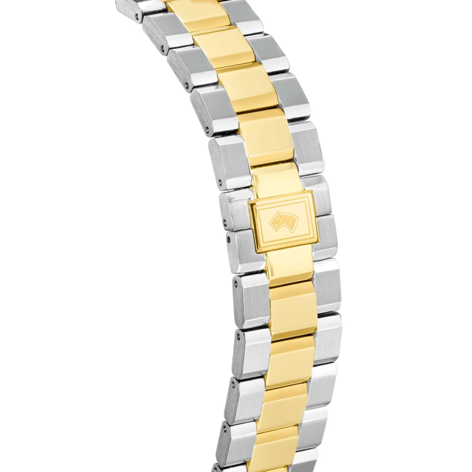 Часы Jaguar ESSENTIA J1043/1 - это воплощение элегантности и точности, созданное для современного мужчины. Эта швейцарская модель отличается изысканным дизайном и высоким качеством исполнения. Корпус часов выполнен из нержавеющей стали серебристого цвета, что придает им благородный и стильный вид. Циферблат защищен сапфировым стекломСапфировое стеклоПрочный и надёжный материал из кристалла сапфира синтетического происхождения, характеризующийся особой твёрдостью и устойчивостью к царапинам и повреждениям., которое славится своей прочностью и устойчивостью к царапинам, обеспечивая долговечность и безупречный внешний вид часов. Неподвижный золотистый безельБезельВнешний ободок, закрепляющий стекло. В спортивных часах так называется поворотное кольцо с делениями на циферблате, выполняет роль таймера – замеряет отрезки времени на шкале. Неподвижный безель – элемент декора. Однонаправленно вращающийся безель на дайверских часах позволяет фиксировать моменты погружения и выныривания на поверхность.. Браслет, также изготовленный из нержавеющей стали с золотистым PVD-покрытиемPVDУльтратонкое покрытие наносится в технике вакуумного напыления, сочетает в себе нитрид титана особой прочности со слоем золота или оксида хрома. Несёт в себе декоративную или защитную функцию., гармонично сочетается с корпусом, создавая целостный и утонченный образ. Диаметр корпуса составляет 40 мм, что делает часы идеальными для мужского запястья. Модель ESSENTIA J1043/1 оснащена швейцарским кварцевым механизмом, гарантирующим высокую точность хода, а также функцией отображения даты, что добавляет практичности этому стильному аксессуару. Часы Jaguar J1043/1- это не просто инструмент для измерения времени, но и статусный аксессуар, который подчеркнет безупречный вкус и уверенность своего владельца. Они идеально подойдут как для деловых встреч, так и для особых случаев, всегда оставаясь верным спутником современного мужчины, ценящего качество и стиль. Браслет имеет скрытую застёжку «бабочка» с кнопкамиЗастёжка "бабочка"Такой вид застёжки дополняется предохранителями, помогающими избежать случайного раскрытия браслета. Обладают изящным исполнением. .