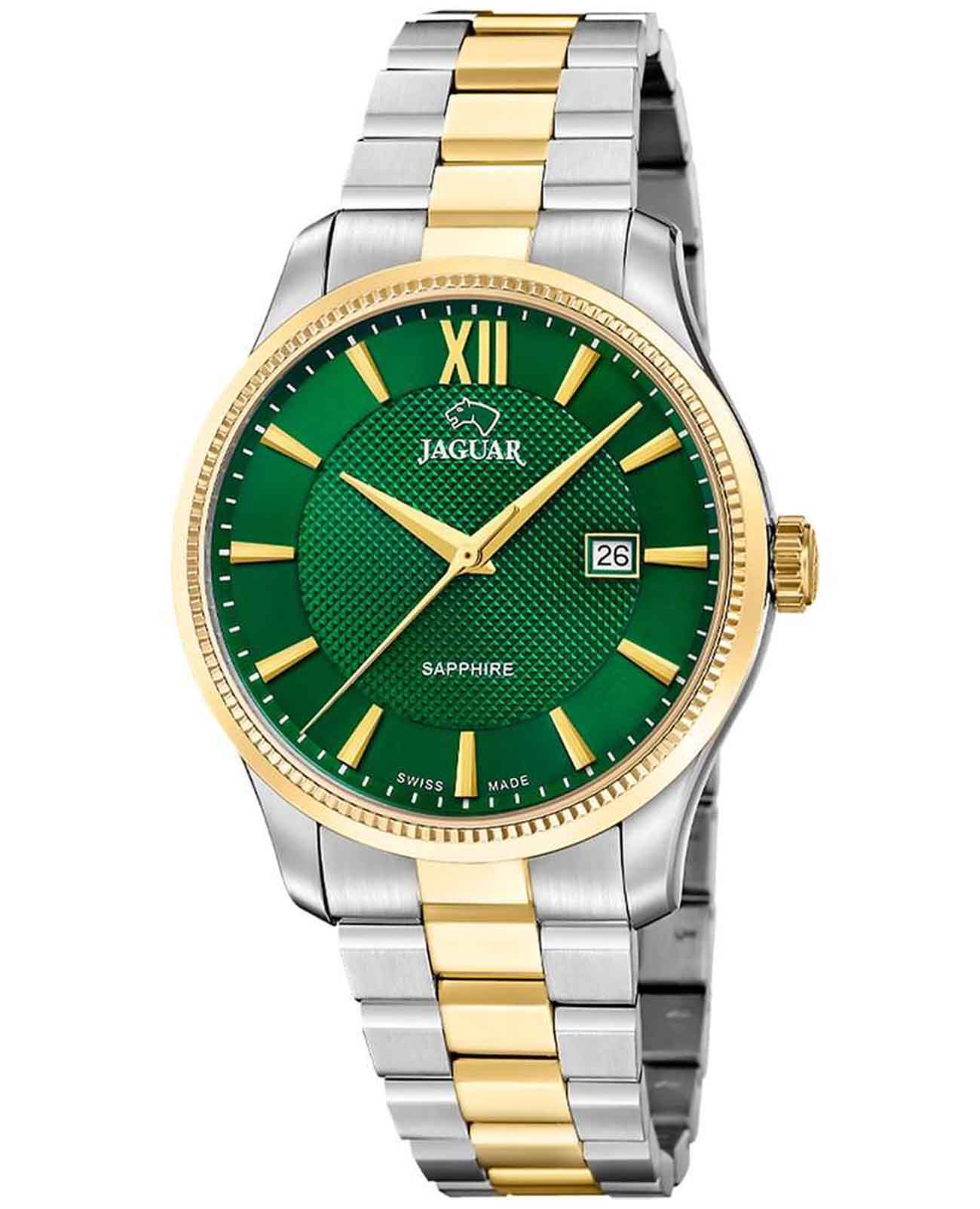 Часы Jaguar ESSENTIA J1043/3 - это воплощение элегантности и точности, созданное для современного мужчины. Эта швейцарская модель отличается изысканным дизайном и высоким качеством исполнения. Корпус часов выполнен из нержавеющей стали серебристого цвета, что придает им благородный и стильный вид. Циферблат защищен сапфировым стекломСапфировое стеклоПрочный и надёжный материал из кристалла сапфира синтетического происхождения, характеризующийся особой твёрдостью и устойчивостью к царапинам и повреждениям., которое славится своей прочностью и устойчивостью к царапинам, обеспечивая долговечность и безупречный внешний вид часов. Неподвижный золотистый безельБезельВнешний ободок, закрепляющий стекло. В спортивных часах так называется поворотное кольцо с делениями на циферблате, выполняет роль таймера – замеряет отрезки времени на шкале. Неподвижный безель – элемент декора. Однонаправленно вращающийся безель на дайверских часах позволяет фиксировать моменты погружения и выныривания на поверхность.. Браслет, также изготовленный из нержавеющей стали с золотистым PVD-покрытиемPVDУльтратонкое покрытие наносится в технике вакуумного напыления, сочетает в себе нитрид титана особой прочности со слоем золота или оксида хрома. Несёт в себе декоративную или защитную функцию., гармонично сочетается с корпусом, создавая целостный и утонченный образ. Диаметр корпуса составляет 40 мм, что делает часы идеальными для мужского запястья. Модель ESSENTIA J1043/3 оснащена швейцарским кварцевым механизмом, гарантирующим высокую точность хода, а также функцией отображения даты, что добавляет практичности этому стильному аксессуару. Часы Jaguar J1043/3 - это не просто инструмент для измерения времени, но и статусный аксессуар, который подчеркнет безупречный вкус и уверенность своего владельца. Они идеально подойдут как для деловых встреч, так и для особых случаев, всегда оставаясь верным спутником современного мужчины, ценящего качество и стиль. Браслет имеет скрытую застёжку «бабочка» с кнопкамиЗастёжка "бабочка"Такой вид застёжки дополняется предохранителями, помогающими избежать случайного раскрытия браслета. Обладают изящным исполнением. .