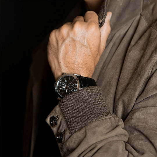 Мужские швейцарские часы Jaguar Acamar J663/4. Кварцевый швейцарский калибр RONDA 6004D. Сапфировое стеклоСапфировое стеклоПрочный и надёжный материал из кристалла сапфира синтетического происхождения, характеризующийся особой твёрдостью и устойчивостью к царапинам и повреждениям. устойчивое к мелким механическим повреждениям. Корпус часов изготовлен из нержавеющей стали. Стрелки и метки с люминесцентным покрытиемЛюминесцентное покрытиеПозволяет считывать показания времени в темноте. Производители наносят на стрелки, часовые индексы, безель или поверхность циферблата светонакопительный состав, дающий холодное свечение.. Окошко даты находится в положении 3 часа. Класс водозащиты: 100 метров, позволит плавать, нырять и заниматься другими водными видами спорта. Кожаный ремешок на стандартной застёжке.