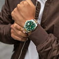 Мужские швейцарские часы Jaguar Executive Diver J863/B. Кварцевый швейцарский калибр Ronda 6003D. Сапфировое стеклоСапфировое стеклоПрочный и надёжный материал из кристалла сапфира синтетического происхождения, характеризующийся особой твёрдостью и устойчивостью к царапинам и повреждениям. устойчивое к мелким механическим повреждениям. Корпус и браслет часов изготовлены из нержавеющей стали. Стрелки и метки с люминесцентным покрытиемЛюминесцентное покрытиеПозволяет считывать показания времени в темноте. Производители наносят на стрелки, часовые индексы, безель или поверхность циферблата светонакопительный состав, дающий холодное свечение.. Окошко даты находится в положении 3 часа. Класс водозащиты: 200 метров, позволит плавать, нырять и заниматься другими водными видами спорта. Стальной браслет с частичным  PVD-покрытиемPVDУльтратонкое покрытие наносится в технике вакуумного напыления, сочетает в себе нитрид титана особой прочности со слоем золота или оксида хрома. Несёт в себе декоративную или защитную функцию. на раскладной застёжкеРаскладная застёжкаТакой тип застёжки используется только на браслетах из металла. Она никогда не раскрывается полностью, происходит разделение на 2 и более частей. Раскладывающая застёжка снизит вероятность потери часов к минимуму.. БезельБезельВнешний ободок, закрепляющий стекло. В спортивных часах так называется поворотное кольцо с делениями на циферблате, выполняет роль таймера – замеряет отрезки времени на шкале. Неподвижный безель – элемент декора. Однонаправленно вращающийся безель на дайверских часах позволяет фиксировать моменты погружения и выныривания на поверхность. с PVD-покрытиемPVDУльтратонкое покрытие наносится в технике вакуумного напыления, сочетает в себе нитрид титана особой прочности со слоем золота или оксида хрома. Несёт в себе декоративную или защитную функцию..