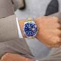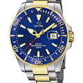 Мужские швейцарские часы Jaguar Executive Diver J863/C. Кварцевый швейцарский калибр Ronda 6003D. Сапфировое стеклоСапфировое стеклоПрочный и надёжный материал из кристалла сапфира синтетического происхождения, характеризующийся особой твёрдостью и устойчивостью к царапинам и повреждениям. устойчивое к мелким механическим повреждениям. Корпус и браслет часов изготовлены из нержавеющей стали. Стрелки и метки с люминесцентным покрытиемЛюминесцентное покрытиеПозволяет считывать показания времени в темноте. Производители наносят на стрелки, часовые индексы, безель или поверхность циферблата светонакопительный состав, дающий холодное свечение.. Окошко даты находится в положении 3 часа. Класс водозащиты: 200 метров, позволит плавать, нырять и заниматься другими водными видами спорта. Стальной браслет с частичным  PVD-покрытиемPVDУльтратонкое покрытие наносится в технике вакуумного напыления, сочетает в себе нитрид титана особой прочности со слоем золота или оксида хрома. Несёт в себе декоративную или защитную функцию. на раскладной застёжкеРаскладная застёжкаТакой тип застёжки используется только на браслетах из металла. Она никогда не раскрывается полностью, происходит разделение на 2 и более частей. Раскладывающая застёжка снизит вероятность потери часов к минимуму.. БезельБезельВнешний ободок, закрепляющий стекло. В спортивных часах так называется поворотное кольцо с делениями на циферблате, выполняет роль таймера – замеряет отрезки времени на шкале. Неподвижный безель – элемент декора. Однонаправленно вращающийся безель на дайверских часах позволяет фиксировать моменты погружения и выныривания на поверхность. с PVD-покрытиемPVDУльтратонкое покрытие наносится в технике вакуумного напыления, сочетает в себе нитрид титана особой прочности со слоем золота или оксида хрома. Несёт в себе декоративную или защитную функцию..
