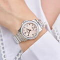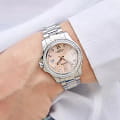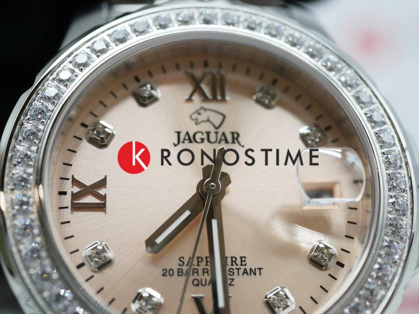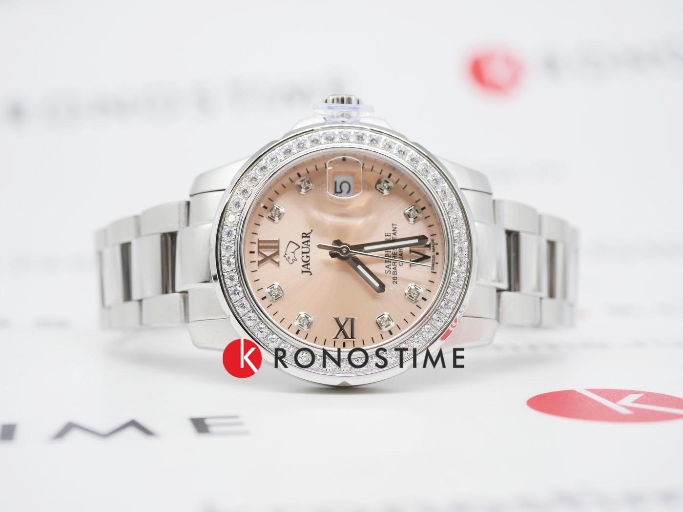 Женские швейцарские часы Jaguar Woman J892/1. Кварцевый швейцарский калибр Ronda 705. Сапфировое стеклоСапфировое стеклоПрочный и надёжный материал из кристалла сапфира синтетического происхождения, характеризующийся особой твёрдостью и устойчивостью к царапинам и повреждениям. устойчивое к мелким механическим повреждениям. Корпус и браслет часов изготовлены из нержавеющей стали, с безелем, инкрустированным цирконием. Стрелки с люминесцентным покрытиемЛюминесцентное покрытиеПозволяет считывать показания времени в темноте. Производители наносят на стрелки, часовые индексы, безель или поверхность циферблата светонакопительный состав, дающий холодное свечение.. Окошко даты находится в положении 3 часа. Класс водозащиты: 200 метров, позволит плавать, нырять и заниматься другими водными видами спорта. Стальной браслет на раскладной застёжкеРаскладная застёжкаТакой тип застёжки используется только на браслетах из металла. Она никогда не раскрывается полностью, происходит разделение на 2 и более частей. Раскладывающая застёжка снизит вероятность потери часов к минимуму.. Циферблат украшен кристаллами в роли часовых индексов.