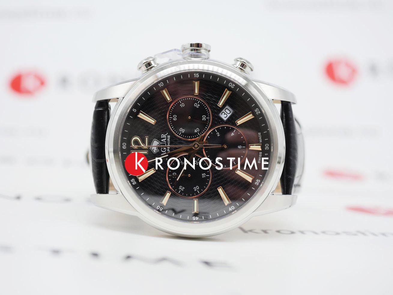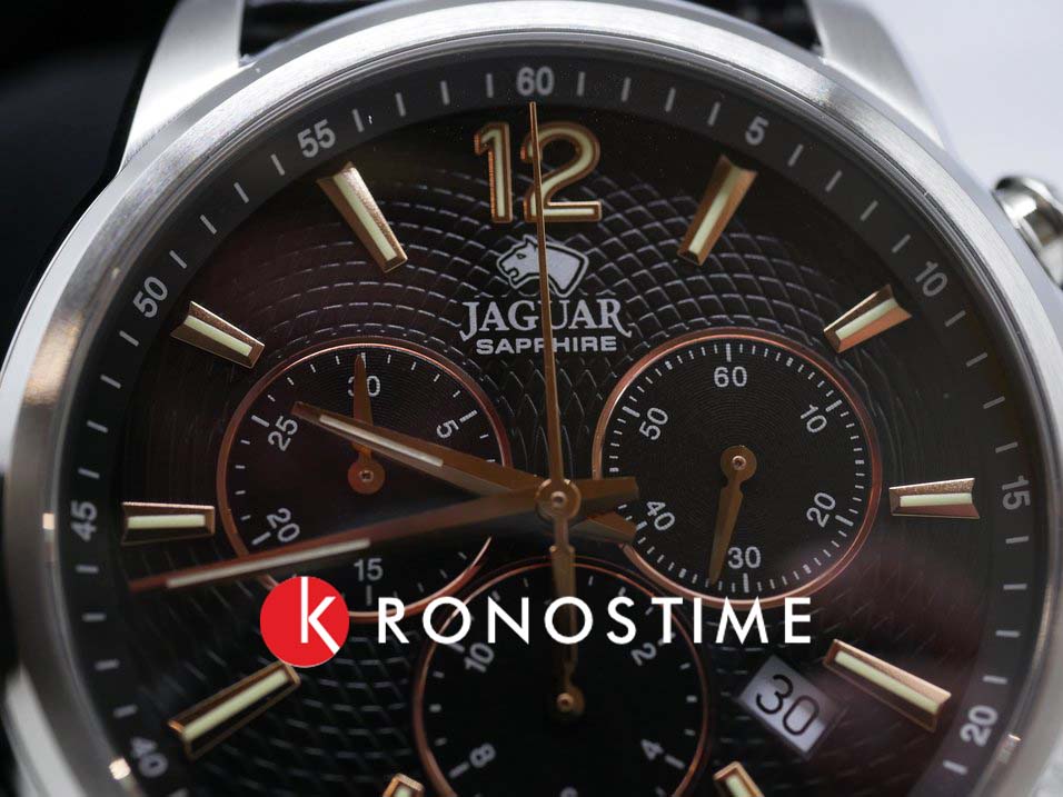 Мужские швейцарские часы-хронографХронографФункция позволяет измерять отрезки времени с особой точностью: часы, минуты, секунды. Верным признаком хронографа является наличие на циферблате 3 дополнительных окошек-счётчиков. Jaguar Acamar J968/6. Кварцевый швейцарский калибр RONDA 5030D. Сапфировое стеклоСапфировое стеклоПрочный и надёжный материал из кристалла сапфира синтетического происхождения, характеризующийся особой твёрдостью и устойчивостью к царапинам и повреждениям. устойчивое к мелким механическим повреждениям. Корпус часов изготовлен из нержавеющей стали. Окошко даты находится в положении между 4 и 5 часов. Класс водозащиты: 50 метров, позволит защитить корпус от случайных брызг или капель дождя. Кожаный ремешок на стандартной застёжке.