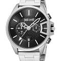 JUST CAVALLI JC1G346M0045 — стильные итальянские часы с функцией второй часовой поясВторой часовой поясФункция, позволяющая отображать время двух часовых поясов одновременно., которые сочетают в себе элегантность и современный функционал. Круглый корпус диаметром 45 мм выполнен из нержавеющей стали, толщина корпуса составляет 12 мм, что придает модели выразительный внешний вид и надежную защиту от внешних воздействий. Часы оснащены кварцевым механизмом, также обладают функцией отображения даты, что делает их удобными для ежедневного использования. Минеральное стеклоМинеральное стеклоМинеральное стекло представляет собой искусственно выращенный минерал кварца. Такое стекло отличается особой устойчивостью к повреждениям и царапинам. Уступает по некоторым качествам сапфировому стеклу. защищает часы от царапин, а водозащита 50 метров идеально подходит для повседневного ношения. Стальной браслет на раскладной застёжкеРаскладная застёжкаТакой тип застёжки используется только на браслетах из металла. Она никогда не раскрывается полностью, происходит разделение на 2 и более частей. Раскладывающая застёжка снизит вероятность потери часов к минимуму. обеспечивает комфортное ношение.