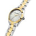 Женские элегантные часы Karl Lagerfeld Round Essentials R0553101507, кварцевый механизм с высокой точностью. Минеральное стеклоМинеральное стеклоМинеральное стекло представляет собой искусственно выращенный минерал кварца. Такое стекло отличается особой устойчивостью к повреждениям и царапинам. Уступает по некоторым качествам сапфировому стеклу. устойчивое к появлению царапин, обладающее высокой прозрачностью. Изысканный корпус изготовлен из нержавеющей стали с неподвижным безелемБезельВнешний ободок, закрепляющий стекло. В спортивных часах так называется поворотное кольцо с делениями на циферблате, выполняет роль таймера – замеряет отрезки времени на шкале. Неподвижный безель – элемент декора. Однонаправленно вращающийся безель на дайверских часах позволяет фиксировать моменты погружения и выныривания на поверхность. с IP-покрытиемIP-покрытиеМетод ионного напыления. Демонстрирует повышенную устойчивость к истиранию, окислению и химическим веществам. Под воздействием высокого давления и температуры около 1500°C молекулы металла надёжно соединяются с частицами корпуса часов.. Лаконичные центральные часовая, минутная и секундная стрелки. Водонепроницаемость 5 АТМ позволяет использовать часы в повседневных условиях — при мытье рук или под лёгким дождём. Стальной браслет с частичным IP-покрытиемIP-покрытиеМетод ионного напыления. Демонстрирует повышенную устойчивость к истиранию, окислению и химическим веществам. Под воздействием высокого давления и температуры около 1500°C молекулы металла надёжно соединяются с частицами корпуса часов. c раскладной застёжкойРаскладная застёжкаТакой тип застёжки используется только на браслетах из металла. Она никогда не раскрывается полностью, происходит разделение на 2 и более частей. Раскладывающая застёжка снизит вероятность потери часов к минимуму., обеспечивающей комфорт и уверенную фиксацию на запястье, а также добавляя завершающий штрих к этому стильному аксессуару. Стрелки и метки оснащены люминесцентным покрытиемЛюминесцентное покрытиеПозволяет считывать показания времени в темноте. Производители наносят на стрелки, часовые индексы, безель или поверхность циферблата светонакопительный состав, дающий холодное свечение., обеспечивающим хорошую читаемость в темноте. Циферблат подчёркивает изысканный характер часов, создавая универсальный образ, подходящий как для повседневных ситуаций, так и для особых случаев. Аккуратное окошко даты на отметке «3 часов».
