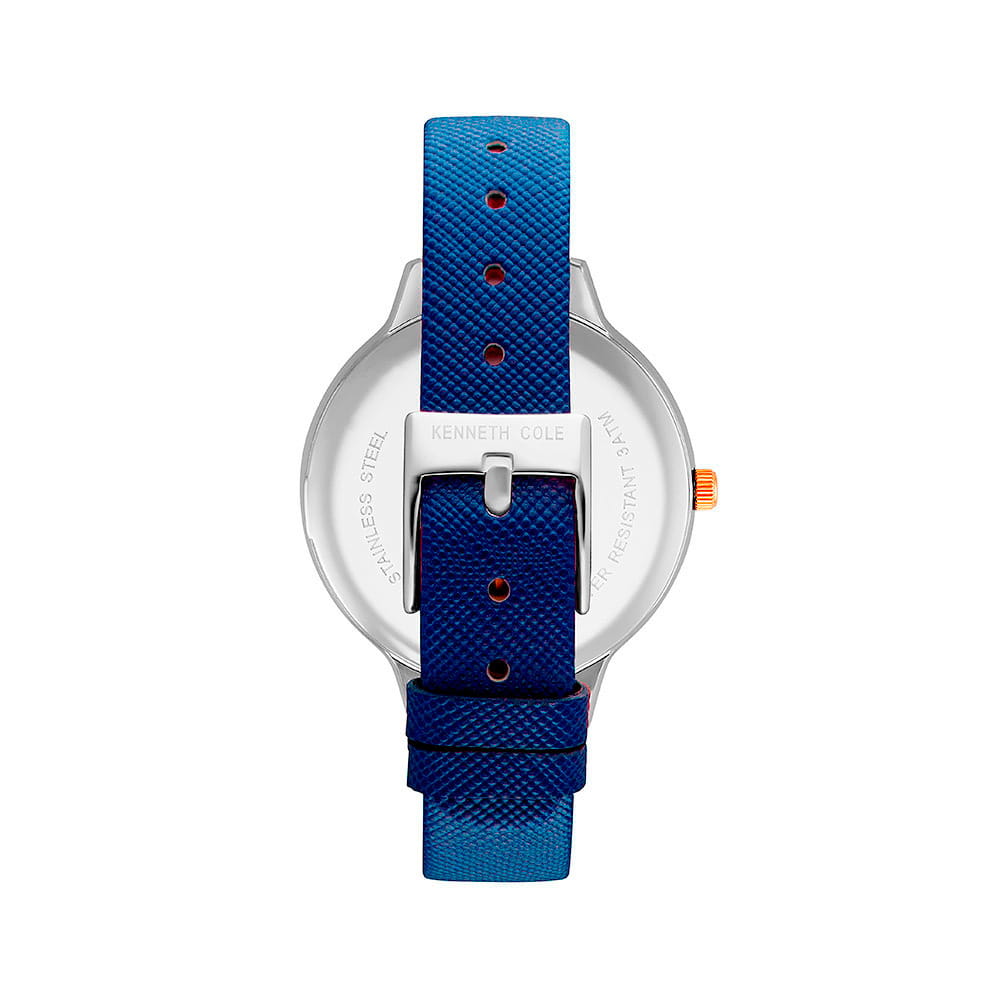 Женские кварцевые часы Kenneth Cole из коллекции Classic — это стильное сочетание классики и современного акцента. Корпус диаметром 38 мм выполнен из нержавеющей стали. Циферблат голубого цвета оформлен лаконичными метками-индексами, добавляя свежесть и элегантность образу. Циферблат защищён минеральным стекломМинеральное стеклоМинеральное стекло представляет собой искусственно выращенный минерал кварца. Такое стекло отличается особой устойчивостью к повреждениям и царапинам. Уступает по некоторым качествам сапфировому стеклу.. Часы оснащены кожаным ремешком синего цвета с классической пряжкой. Водонепроницаемость 30 м позволяет использовать часы в повседневных условиях, защищая от случайных брызг и капель дождя. Рифлёная заводная головка завершает дизайн. Сочетание аккуратного дизайна и выразительного цветового решения делает эти часы универсальным и запоминающимся аксессуаром.