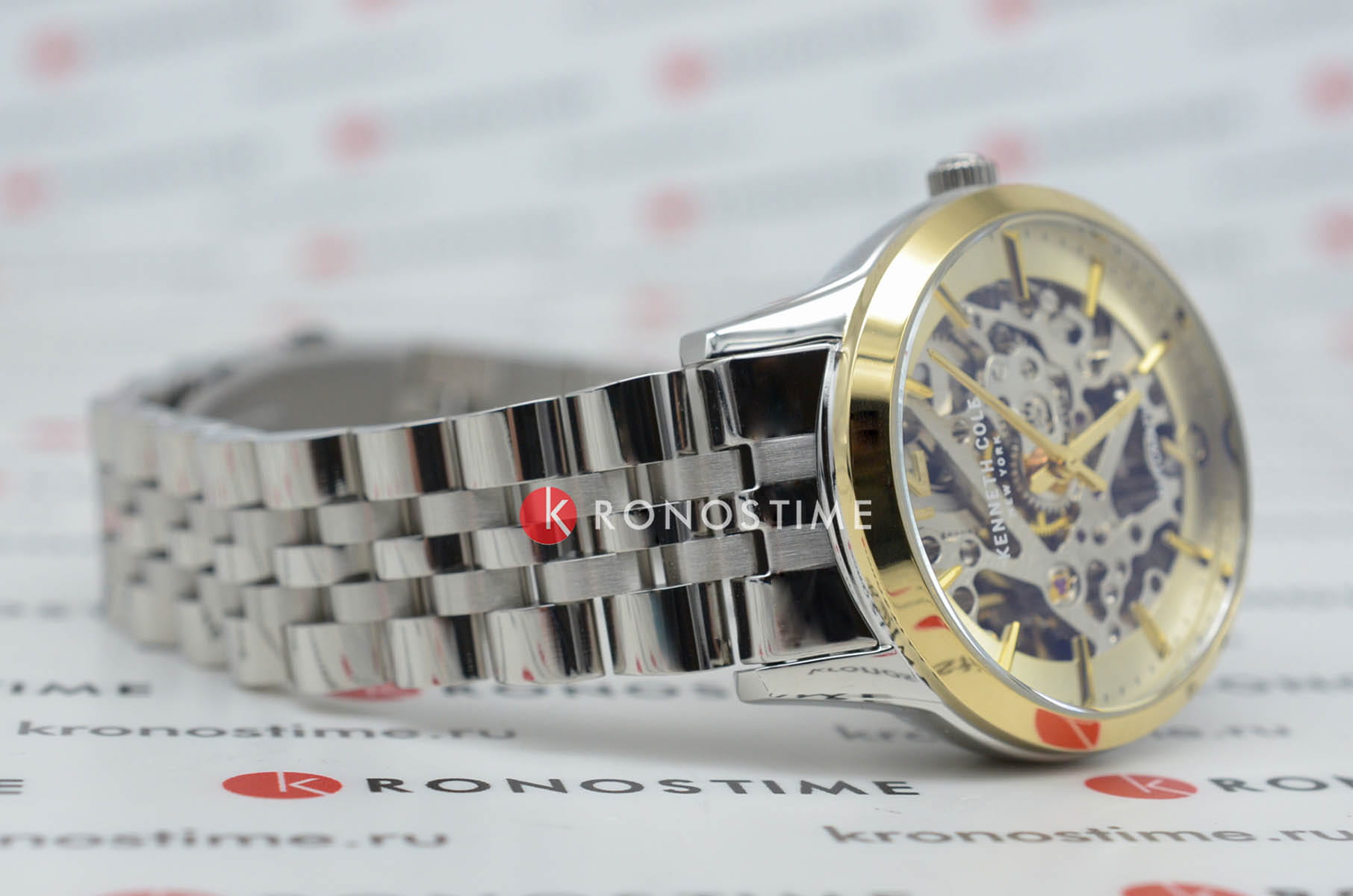 Женские механические часы с автоподзаводом Kenneth Cole KCWLL0047403 — это элегантный аксессуар, сочетающий женственность и современный дизайн. Корпус диаметром 36 мм выполнен из нержавеющей стали. Циферблат золотистого цвета частично скелетонизирован, что позволяет наблюдать за работой механизма, добавляя модели инженерной изысканности. Циферблат защищён минеральным стекломМинеральное стеклоМинеральное стекло представляет собой искусственно выращенный минерал кварца. Такое стекло отличается особой устойчивостью к повреждениям и царапинам. Уступает по некоторым качествам сапфировому стеклу. и оформлен метками в виде арабских цифр и штрихов. БезельБезельВнешний ободок, закрепляющий стекло. В спортивных часах так называется поворотное кольцо с делениями на циферблате, выполняет роль таймера – замеряет отрезки времени на шкале. Неподвижный безель – элемент декора. Однонаправленно вращающийся безель на дайверских часах позволяет фиксировать моменты погружения и выныривания на поверхность. с IP-покрытиемIP-покрытиеМетод ионного напыления. Демонстрирует повышенную устойчивость к истиранию, окислению и химическим веществам. Под воздействием высокого давления и температуры около 1500°C молекулы металла надёжно соединяются с частицами корпуса часов.. Часы оснащены стальным браслетом с раскладной застёжкойРаскладная застёжкаТакой тип застёжки используется только на браслетах из металла. Она никогда не раскрывается полностью, происходит разделение на 2 и более частей. Раскладывающая застёжка снизит вероятность потери часов к минимуму.. Водонепроницаемость 30 м позволяет использовать часы в повседневных условиях, защищая от случайных брызг и капель дождя. Сочетание лаконичного стиля и надёжного механизма делает эти часы универсальным выбором для повседневного и делового образа.