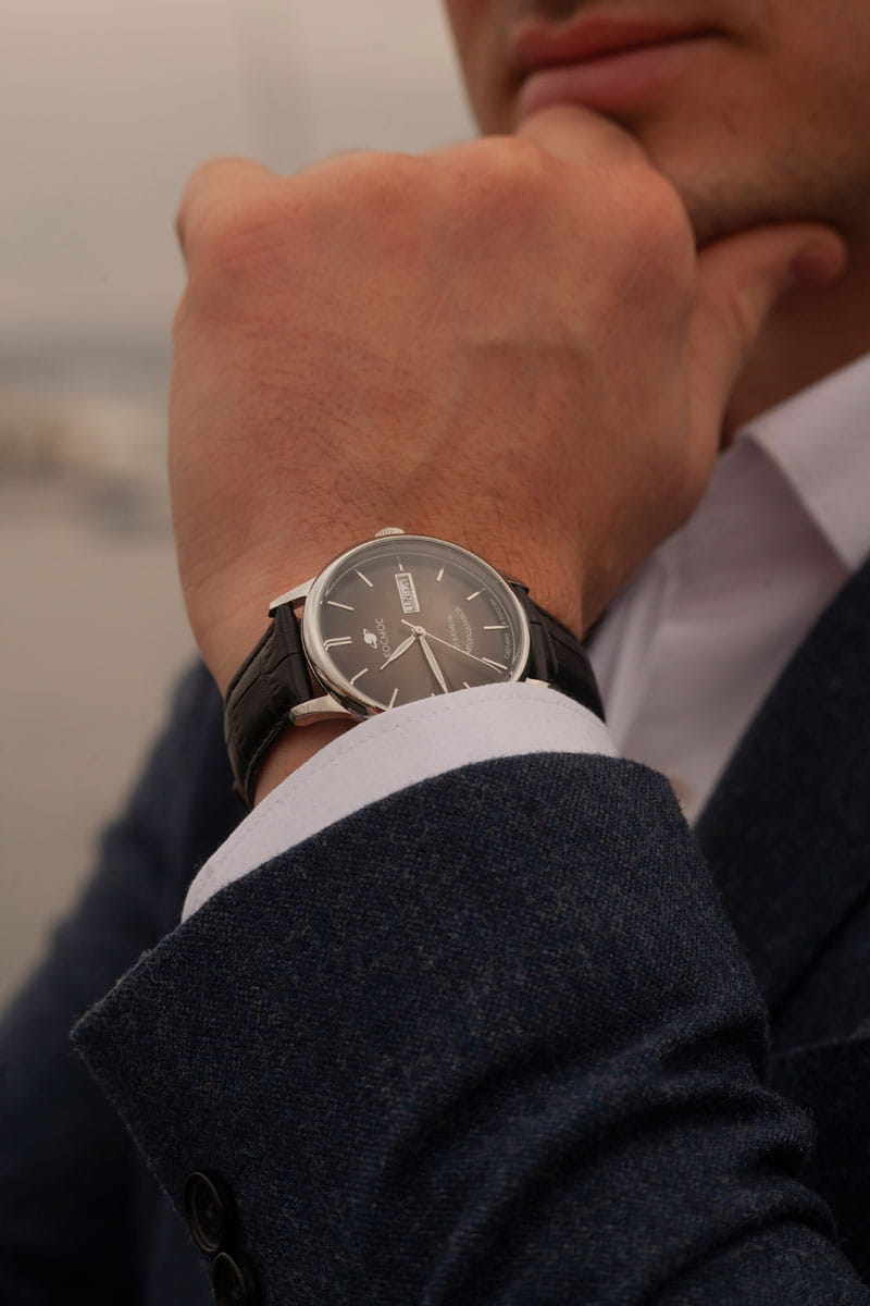 Мужские механические часы Космос Юпитер K 043.11.31 с автоподзаводом оснащены механизмом TMI. Круглый корпус из нержавеющей стали диаметром 41 мм и толщиной 14 мм защищен минеральным стекломМинеральное стеклоМинеральное стекло представляет собой искусственно выращенный минерал кварца. Такое стекло отличается особой устойчивостью к повреждениям и царапинам. Уступает по некоторым качествам сапфировому стеклу.. Чёрный циферблат дополнен функциями отображения даты и дня недели. Часы имеют водонепроницаемость 50 метров, позволит защитить корпус от случайных брызг или капель дождя. Модель комплектуется ремешком из натуральной кожи чёрного цвета шириной 20 мм на стандартной застежке. Серебряный цвет корпуса подчеркивает классический дизайн часов, делая их универсальным аксессуаром для повседневного использования. Надежный механизм и качественные материалы обеспечивают долговечность и точность хода.