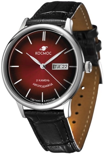 Российские мужские механические часы Космос K 043.11.35 с автоподзаводом оснащены корпусом из нержавеющей стали 316L диаметром 41 мм и защищены минеральным стекломМинеральное стеклоМинеральное стекло представляет собой искусственно выращенный минерал кварца. Такое стекло отличается особой устойчивостью к повреждениям и царапинам. Уступает по некоторым качествам сапфировому стеклу.. Красный циферблат дополнен функциями отображения даты и дня недели.Стрелки с люминесцентным покрытиемЛюминесцентное покрытиеПозволяет считывать показания времени в темноте. Производители наносят на стрелки, часовые индексы, безель или поверхность циферблата светонакопительный состав, дающий холодное свечение. обеспечивают хорошую видимость в темное время суток. Заводная головка декорирована логотипом бренда в виде стилизованного изображения планеты. Часы имеют водонепроницаемость 50 метров, позволит защитить корпус от случайных брызг или капель дождя. Модель комплектуется ремешком из натуральной кожи на стандартной застежке. Прочный корпус и надежный механизм делают эти часы универсальным аксессуаром для повседневного использования. Уникальный дизайн и высокое качество материалов подчеркивают индивидуальность владельца. Специальные крепежи позволяют легко заменить браслет на часах самостоятельно.