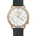 Женские швейцарские механические часы с автоподзаводом L'Duchen Coquille D 713.41.33 M. Сапфировое стеклоСапфировое стеклоПрочный и надёжный материал из кристалла сапфира синтетического происхождения, характеризующийся особой твёрдостью и устойчивостью к царапинам и повреждениям. устойчивое к появлению царапин, обладающее высокой прозрачностью. Корпус часов выполнен из нержавеющей стали с PVD-покрытиемPVDУльтратонкое покрытие наносится в технике вакуумного напыления, сочетает в себе нитрид титана особой прочности со слоем золота или оксида хрома. Несёт в себе декоративную или защитную функцию.. БезельБезельВнешний ободок, закрепляющий стекло. В спортивных часах так называется поворотное кольцо с делениями на циферблате, выполняет роль таймера – замеряет отрезки времени на шкале. Неподвижный безель – элемент декора. Однонаправленно вращающийся безель на дайверских часах позволяет фиксировать моменты погружения и выныривания на поверхность. и циферблат украшены фианитами. Стрелки с люминесцентным покрытиемЛюминесцентное покрытиеПозволяет считывать показания времени в темноте. Производители наносят на стрелки, часовые индексы, безель или поверхность циферблата светонакопительный состав, дающий холодное свечение.. Класс водозащиты: 50 метров, позволит защитить корпус от случайных брызг или капель дождя. Кожаный ремешок на застёжке «бабочка» с кнопкамиЗастёжка "бабочка"Такой вид застёжки дополняется предохранителями, помогающими избежать случайного раскрытия браслета. Обладают изящным исполнением. .