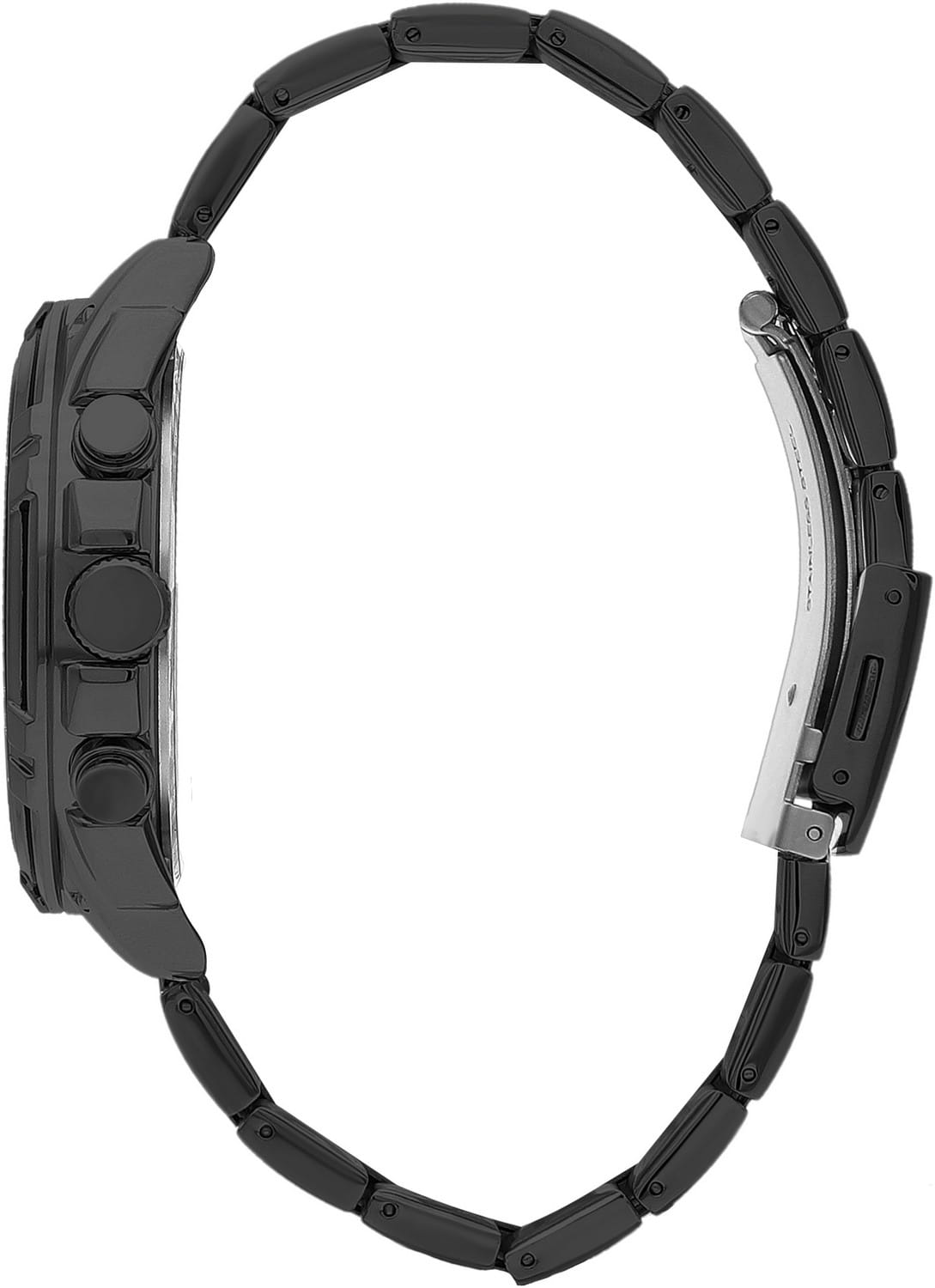 Мужские часы Lee Cooper LC07546.650 — это стильное сочетание элегантности и современного дизайна. Круглый корпус диаметром 45 мм выполнен из суперметалла с IP-покрытиемIP-покрытиеМетод ионного напыления. Демонстрирует повышенную устойчивость к истиранию, окислению и химическим веществам. Под воздействием высокого давления и температуры около 1500°C молекулы металла надёжно соединяются с частицами корпуса часов. черного цвета, что придает модели особый вид. Циферблат защищен минеральным стекломМинеральное стеклоМинеральное стекло представляет собой искусственно выращенный минерал кварца. Такое стекло отличается особой устойчивостью к повреждениям и царапинам. Уступает по некоторым качествам сапфировому стеклу., обеспечивающим устойчивость к царапинам. Метки в виде штрихов. Часы оснащены надежным кварцевым механизмом, а стальной браслет на раскладной застёжкеРаскладная застёжкаТакой тип застёжки используется только на браслетах из металла. Она никогда не раскрывается полностью, происходит разделение на 2 и более частей. Раскладывающая застёжка снизит вероятность потери часов к минимуму. с IP-покрытиемIP-покрытиеМетод ионного напыления. Демонстрирует повышенную устойчивость к истиранию, окислению и химическим веществам. Под воздействием высокого давления и температуры около 1500°C молекулы металла надёжно соединяются с частицами корпуса часов. гарантирует комфортную посадку на запястье. Окошко даты находится в положении между 4 и 5 часов. Стрелки и метки с люминесцентным покрытиемЛюминесцентное покрытиеПозволяет считывать показания времени в темноте. Производители наносят на стрелки, часовые индексы, безель или поверхность циферблата светонакопительный состав, дающий холодное свечение. позволяют легко считывать время даже в условиях недостаточного освещения. Водозащита 50 метров позволит защитить корпус от случайных брызг или капель дождя. Lee Cooper  — отличный выбор для тех, кто ценит утонченность и качество.
