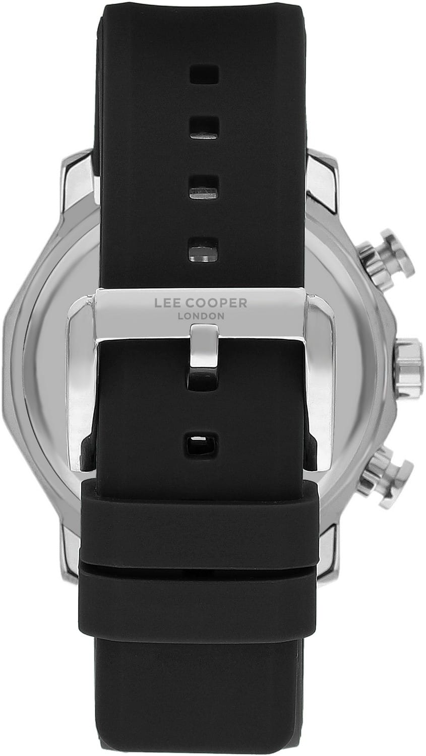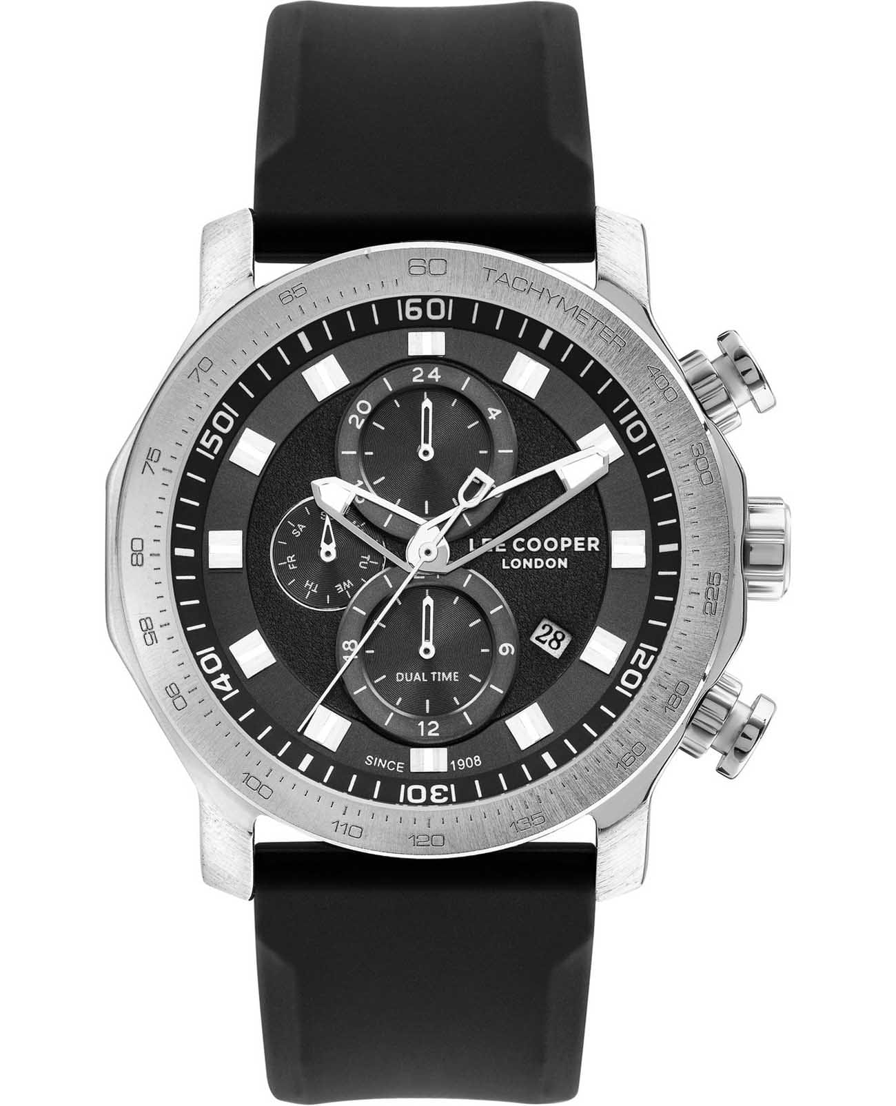 Lee Cooper LC07631.351  — элегантная модель с функциональными возможностями для повседневного использования. Корпус из суперметалла диаметром 49 мм придаёт часам классический и современный вид. Циферблат защищён минеральным стекломМинеральное стеклоМинеральное стекло представляет собой искусственно выращенный минерал кварца. Такое стекло отличается особой устойчивостью к повреждениям и царапинам. Уступает по некоторым качествам сапфировому стеклу., устойчивым к царапинам, хорошо может выдержать небольшие удары и падения. Стильный циферблат оформлен изысканными индексами и дополнен окошками даты, дня недели и 24-часового индикатора, а также аккуратными метками и стрелками с люминесцентным покрытиемЛюминесцентное покрытиеПозволяет считывать показания времени в темноте. Производители наносят на стрелки, часовые индексы, безель или поверхность циферблата светонакопительный состав, дающий холодное свечение., что гарантирует читаемость даже в условиях недостаточного освещения. Функция второго часового поясаВторой часовой поясФункция, позволяющая отображать время двух часовых поясов одновременно. делает часы удобными для путешественников. Часы работают на кварцевом механизме, обеспечивающем точность хода. Каучуковый ремешок на стандартной застёжке гарантирует удобную посадку и надёжную фиксацию на запястье. Водозащита 50 метров защищает часы от брызг и дождя, делая их подходящими для повседневного использования.