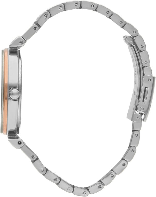 Женские часы Lee Cooper LC07711.530 — это стильное сочетание элегантности и современного дизайна. Круглый корпус диаметром 35 мм выполнен из суперметалла серебристого цвета. Неподвижный безельБезельВнешний ободок, закрепляющий стекло. В спортивных часах так называется поворотное кольцо с делениями на циферблате, выполняет роль таймера – замеряет отрезки времени на шкале. Неподвижный безель – элемент декора. Однонаправленно вращающийся безель на дайверских часах позволяет фиксировать моменты погружения и выныривания на поверхность. с IP-покрытиемIP-покрытиеМетод ионного напыления. Демонстрирует повышенную устойчивость к истиранию, окислению и химическим веществам. Под воздействием высокого давления и температуры около 1500°C молекулы металла надёжно соединяются с частицами корпуса часов. золотого цвета придает модели особый блеск. Изысканный циферблат защищен минеральным стекломМинеральное стеклоМинеральное стекло представляет собой искусственно выращенный минерал кварца. Такое стекло отличается особой устойчивостью к повреждениям и царапинам. Уступает по некоторым качествам сапфировому стеклу., обеспечивающим устойчивость к царапинам. Метки в виде штрихов. Часы оснащены надежным кварцевым механизмом, а стальной браслет с частичным IP-покрытиемIP-покрытиеМетод ионного напыления. Демонстрирует повышенную устойчивость к истиранию, окислению и химическим веществам. Под воздействием высокого давления и температуры около 1500°C молекулы металла надёжно соединяются с частицами корпуса часов. на раскладной застёжкеРаскладная застёжкаТакой тип застёжки используется только на браслетах из металла. Она никогда не раскрывается полностью, происходит разделение на 2 и более частей. Раскладывающая застёжка снизит вероятность потери часов к минимуму. гарантирует комфортную посадку на запястье. Водозащита 30 метров защищает модель от случайных брызг и дождя. Lee Cooper  — отличный выбор для тех, кто ценит утонченность и качество.