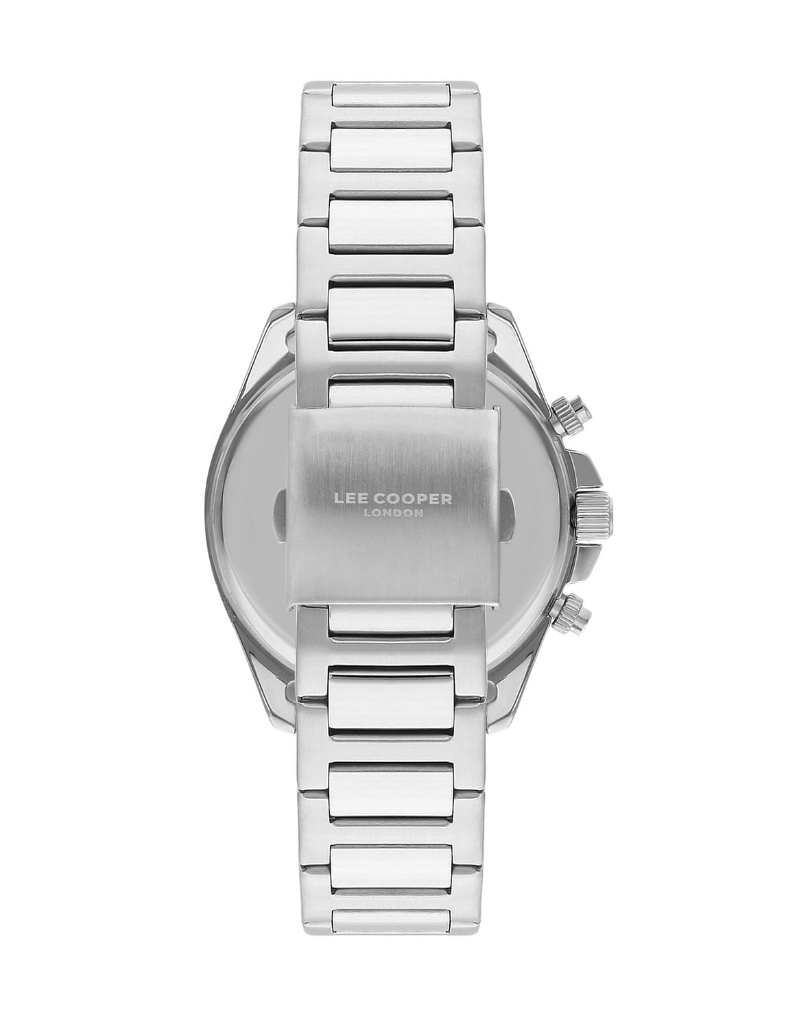 Мужские наручные часы Lee Cooper LC07829.330 оснащены точным кварцевым механизмом. Корпус часов выполнен из суперметалла с изысканным неподвижным безелемБезельВнешний ободок, закрепляющий стекло. В спортивных часах так называется поворотное кольцо с делениями на циферблате, выполняет роль таймера – замеряет отрезки времени на шкале. Неподвижный безель – элемент декора. Однонаправленно вращающийся безель на дайверских часах позволяет фиксировать моменты погружения и выныривания на поверхность. с IP-покрытиемIP-покрытиеМетод ионного напыления. Демонстрирует повышенную устойчивость к истиранию, окислению и химическим веществам. Под воздействием высокого давления и температуры около 1500°C молекулы металла надёжно соединяются с частицами корпуса часов. черного цвета, что делает их устойчивыми к внешним воздействиям и придает благородный вид. Изящный циферблат украшен классическими стрелками и индексами, гармонично дополняющими общий дизайн модели. Для защиты циферблата используется минеральное стеклоМинеральное стеклоМинеральное стекло представляет собой искусственно выращенный минерал кварца. Такое стекло отличается особой устойчивостью к повреждениям и царапинам. Уступает по некоторым качествам сапфировому стеклу., устойчивое к царапинам и механическим повреждениям. Циферблат с акцентными метками и стрелками с люминесцентным покрытиемЛюминесцентное покрытиеПозволяет считывать показания времени в темноте. Производители наносят на стрелки, часовые индексы, безель или поверхность циферблата светонакопительный состав, дающий холодное свечение. также оснащён вспомогательными индикаторами, включая 24-часовой формат времени, а также второй часовой поясВторой часовой поясФункция, позволяющая отображать время двух часовых поясов одновременно.. Браслет изготовлен из стали, создавая стильный и универсальный образ, и оснащен раскладной застёжкойРаскладная застёжкаТакой тип застёжки используется только на браслетах из металла. Она никогда не раскрывается полностью, происходит разделение на 2 и более частей. Раскладывающая застёжка снизит вероятность потери часов к минимуму., обеспечивающей комфортное и безопасное ношение. В нижней части расположено окошко даты, что делает модель ещё более практичной. Часы обладают водонепроницаемостью до 50 метров (5 АТМ), что позволяет использовать их в повседневной жизни, включая контакт с водой при мытье рук или дожде. Эти часы станут идеальным выбором для мужчин, ценящих стиль, качество и функциональность.