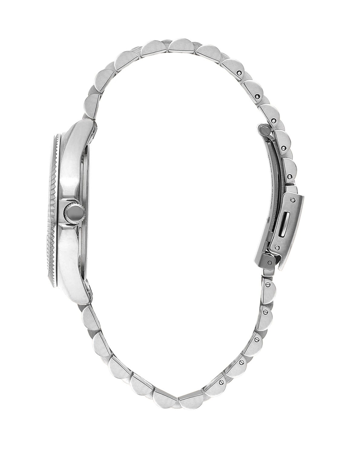 Женские часы Lee Cooper LC07837.560 — это стильное сочетание элегантности и современного дизайна. Корпус диаметром 36 мм выполнен из суперметалла серебристого цвета, придающий модели особый блеск. Изысканный циферблат защищен минеральным стекломМинеральное стеклоМинеральное стекло представляет собой искусственно выращенный минерал кварца. Такое стекло отличается особой устойчивостью к повреждениям и царапинам. Уступает по некоторым качествам сапфировому стеклу., обеспечивающим устойчивость к царапинам. Метки в виде штрихов. Вынесенный циферблат с 24-х часовым указателем времени, индикацией даты и дня недели. Стрелки и метки с люминесцентным покрытиемЛюминесцентное покрытиеПозволяет считывать показания времени в темноте. Производители наносят на стрелки, часовые индексы, безель или поверхность циферблата светонакопительный состав, дающий холодное свечение. позволяют легко считывать время даже в условиях недостаточного освещения.Часы оснащены надежным кварцевым механизмом, а стальной браслет с частичным IP-покрытиемIP-покрытиеМетод ионного напыления. Демонстрирует повышенную устойчивость к истиранию, окислению и химическим веществам. Под воздействием высокого давления и температуры около 1500°C молекулы металла надёжно соединяются с частицами корпуса часов. на раскладной застёжкеРаскладная застёжкаТакой тип застёжки используется только на браслетах из металла. Она никогда не раскрывается полностью, происходит разделение на 2 и более частей. Раскладывающая застёжка снизит вероятность потери часов к минимуму. гарантирует комфортную посадку на запястье. Водозащита 50 метров защищает модель от случайных брызг и дождя. Lee Cooper  — отличный выбор для тех, кто ценит утонченность и качество.