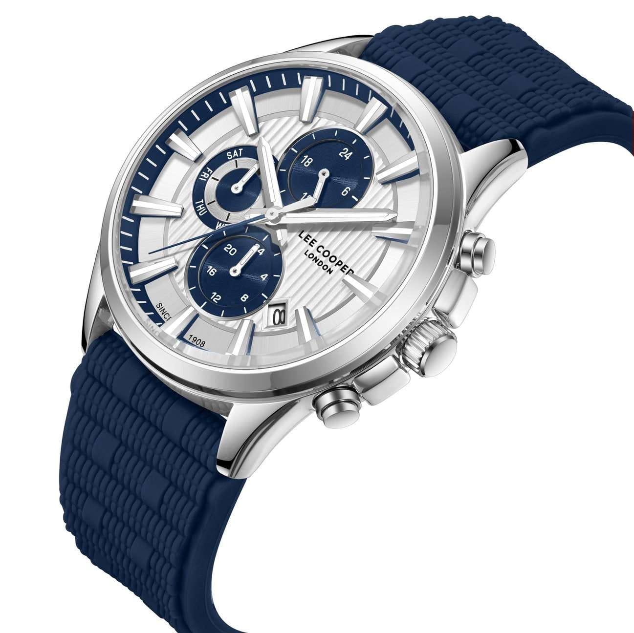 Мужские наручные часы Lee Cooper LC08183.339 оснащены кварцевым механизмом, обеспечивающий высокую точность хода и надежность. Элегантный корпус часов выполнен из суперметалла серебристого цвета, что делает их устойчивыми к внешним воздействиям и придает благородный вид. Циферблат украшен классическими стрелками и метками с люминесцентным покрытиемЛюминесцентное покрытиеПозволяет считывать показания времени в темноте. Производители наносят на стрелки, часовые индексы, безель или поверхность циферблата светонакопительный состав, дающий холодное свечение., гармонично дополняющим общий дизайн модели. Для защиты циферблата используется минеральное стеклоМинеральное стеклоМинеральное стекло представляет собой искусственно выращенный минерал кварца. Такое стекло отличается особой устойчивостью к повреждениям и царапинам. Уступает по некоторым качествам сапфировому стеклу., устойчивое к царапинам и механическим повреждениям. Корпус диаметром 43 мм, что делает часы заметными и подходящими для любого образа. Каучуковый ремешок на стандартной застёжке обеспечивает комфортное и безопасное ношение. Окошко даты находится в положении между 4 и 5 часов. Часы обладают водонепроницаемостью до 30 метров (3 АТМ), что позволяет использовать их в повседневной жизни, включая контакт с водой при мытье рук или дожде. Эти часы станут идеальным выбором для мужчин, ценящих стиль, качество и функциональность.