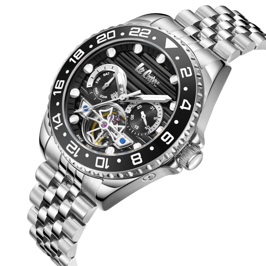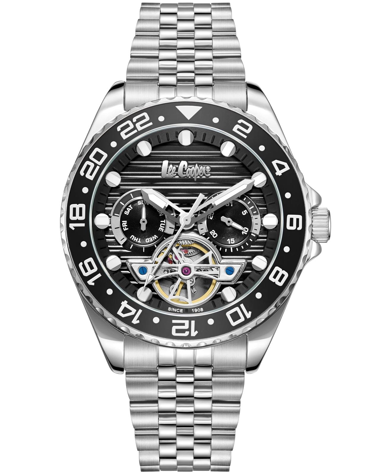 Мужские наручные часы-скелетоны Lee Cooper LC08192.350 механические с автоподзаводом, обеспечивающие высокую точность хода и надежность. Корпус часов выполнен из суперметалла серебристого цвета, диаметром 42 мм, что делает их устойчивыми к внешним воздействиям и придает благородный вид. Циферблат украшен классическими стрелками и метками с люминесцентным покрытиемЛюминесцентное покрытиеПозволяет считывать показания времени в темноте. Производители наносят на стрелки, часовые индексы, безель или поверхность циферблата светонакопительный состав, дающий холодное свечение., гармонично дополняющим общий дизайн модели. Для защиты циферблата используется минеральное стеклоМинеральное стеклоМинеральное стекло представляет собой искусственно выращенный минерал кварца. Такое стекло отличается особой устойчивостью к повреждениям и царапинам. Уступает по некоторым качествам сапфировому стеклу., устойчивое к царапинам и механическим повреждениям. БезельБезельВнешний ободок, закрепляющий стекло. В спортивных часах так называется поворотное кольцо с делениями на циферблате, выполняет роль таймера – замеряет отрезки времени на шкале. Неподвижный безель – элемент декора. Однонаправленно вращающийся безель на дайверских часах позволяет фиксировать моменты погружения и выныривания на поверхность. с IP-покрытиемIP-покрытиеМетод ионного напыления. Демонстрирует повышенную устойчивость к истиранию, окислению и химическим веществам. Под воздействием высокого давления и температуры около 1500°C молекулы металла надёжно соединяются с частицами корпуса часов. черного цвета. Стальной браслет на застёжке-бабочке с кнопкамиЗастёжка "бабочка"Такой вид застёжки дополняется предохранителями, помогающими избежать случайного раскрытия браслета. Обладают изящным исполнением. обеспечивает комфортное и безопасное ношение. Часы обладают водонепроницаемостью до 50 метров (5 АТМ), что позволяет использовать их в повседневной жизни, включая контакт с водой при мытье рук или дожде. Эти часы станут идеальным выбором для мужчин, ценящих стиль, качество и функциональность.