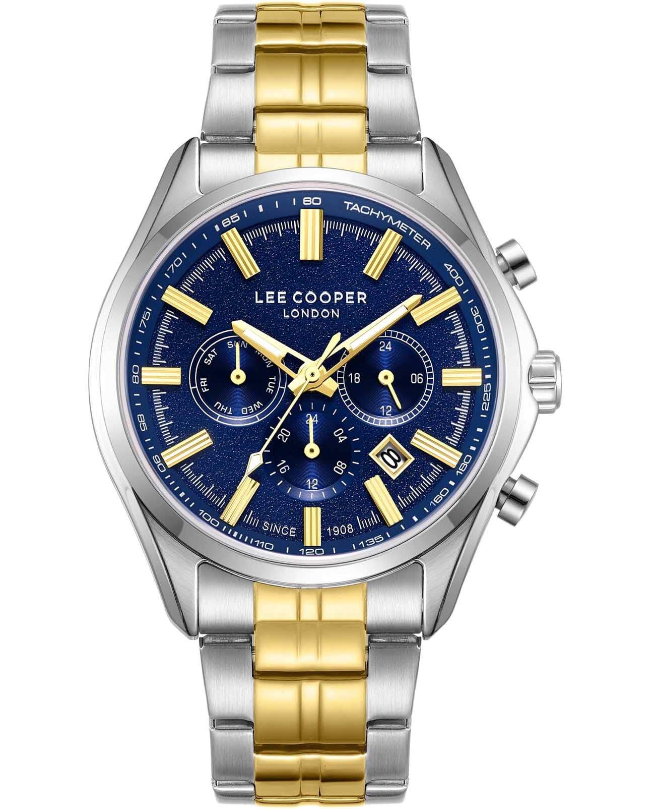 Мужские наручные часы Lee Cooper LC08199.390 оснащены кварцевым механизмом, обеспечивающий высокую точность хода и надежность. Элегантный корпус часов выполнен из суперметалла серебристого цвета, что делает их устойчивыми к внешним воздействиям и придает благородный вид. Циферблат украшен классическими стрелками с люминесцентным покрытиемЛюминесцентное покрытиеПозволяет считывать показания времени в темноте. Производители наносят на стрелки, часовые индексы, безель или поверхность циферблата светонакопительный состав, дающий холодное свечение., гармонично дополняющим общий дизайн модели. Для защиты циферблата используется минеральное стеклоМинеральное стеклоМинеральное стекло представляет собой искусственно выращенный минерал кварца. Такое стекло отличается особой устойчивостью к повреждениям и царапинам. Уступает по некоторым качествам сапфировому стеклу., устойчивое к царапинам и механическим повреждениям, тахиметрТахиметрРазмеченная шкала, располагается на ободке или безеле часов. Тахиметр позволяет рассчитать скорость на определённом участке пути, расстояние измеряется в километрах или милях. по внешнему краю. Корпус имеет круглую форму диаметром 44 мм, что делает часы заметными и подходящими. Браслет из стали с частичным IP-покрытиемIP-покрытиеМетод ионного напыления. Демонстрирует повышенную устойчивость к истиранию, окислению и химическим веществам. Под воздействием высокого давления и температуры около 1500°C молекулы металла надёжно соединяются с частицами корпуса часов. оснащен раскладной застёжкойРаскладная застёжкаТакой тип застёжки используется только на браслетах из металла. Она никогда не раскрывается полностью, происходит разделение на 2 и более частей. Раскладывающая застёжка снизит вероятность потери часов к минимуму., обеспечивающим комфортное и безопасное ношение. Вынесенный циферблат с 24-х часовым указателем времени, индикацией даты и дня недели. Окошко даты находится в положении между 4 и 5 часов. Часы обладают водонепроницаемостью до 30 метров (3 АТМ), что позволяет использовать их в повседневной жизни, включая контакт с водой при мытье рук или дожде. Эти часы станут идеальным выбором для мужчин, ценящих стиль, качество и функциональность.