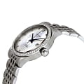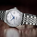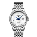 Женские швейцарские механические часы с автоподзаводом Longines Record Collection L2.321.0.87.6. Сапфировое стеклоСапфировое стеклоПрочный и надёжный материал из кристалла сапфира синтетического происхождения, характеризующийся особой твёрдостью и устойчивостью к царапинам и повреждениям. устойчивое к появлению царапин, обладающее высокой прозрачностью. Корпус часов из нержавеющей стали. Окошко даты в положении 3 часов. Прозрачная задняя крышка. Циферблат с 13 бриллиантами группы Top Wesselton VS-SI общим весом 0.037 карата. Класс водозащиты: 30 метров, позволит защитить корпус от случайных брызг или капель дождя. Стальной браслет на застёжке «бабочка» с кнопкамиЗастёжка "бабочка"Такой вид застёжки дополняется предохранителями, помогающими избежать случайного раскрытия браслета. Обладают изящным исполнением. .