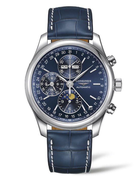 Мужские швейцарские механические часы Longines Master Collection L2.773.4.92.2 – брендовый хронографХронографФункция позволяет измерять отрезки времени с особой точностью: часы, минуты, секунды. Верным признаком хронографа является наличие на циферблате 3 дополнительных окошек-счётчиков. для делового мужчины.