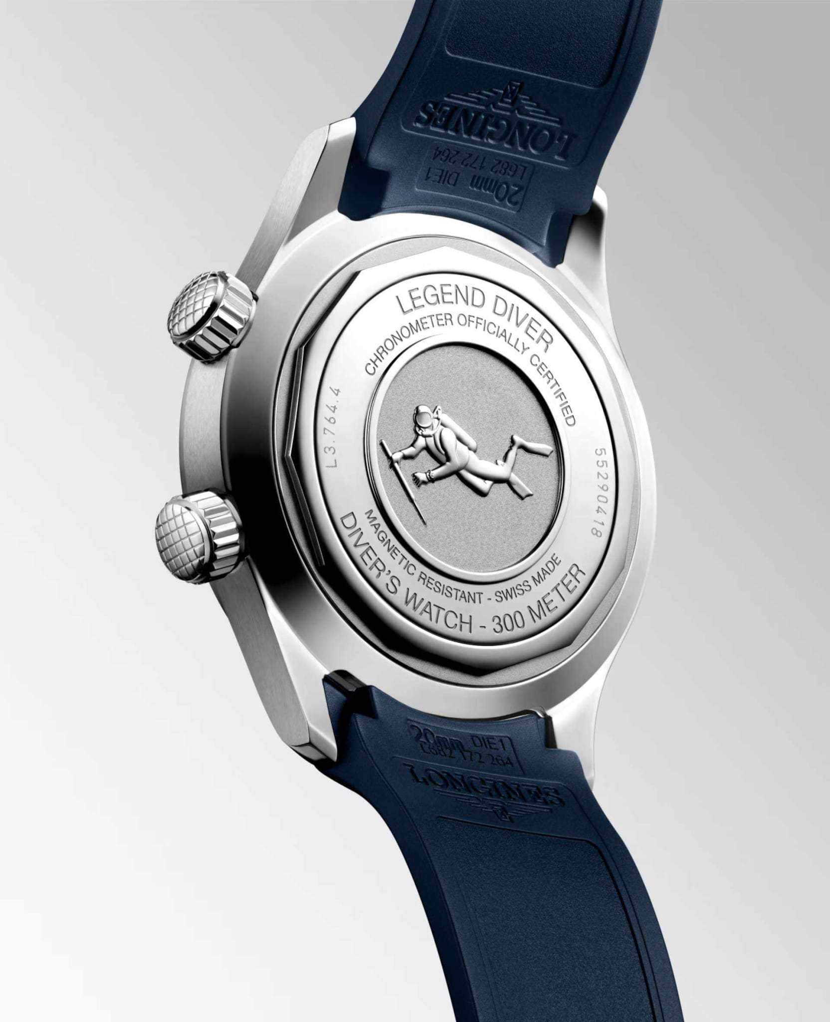 Швейцарские мужские механические часы Longines Legend Diver L3.764.4.90.9 – спортивный аксессуар в дайверском стиле. Циферблат отличается улучшенной читабельностью показателей благодаря крупной индикации времени, стрелками и метками с люминесцентной подсветкойЛюминесцентное покрытиеПозволяет считывать показания времени в темноте. Производители наносят на стрелки, часовые индексы, безель или поверхность циферблата светонакопительный состав, дающий холодное свечение. Super-LumiNova, антибликовому покрытиюАнтибликовое покрытиеСлой оксида металла в 0,13-0,3 микрон, благодаря которому стекло часов не бликует и не отражает свет. Антибликовое покрытие уменьшает отражение света в 10 раз, обеспечивая отличную читаемость показателей циферблата. сапфирового стеклаСапфировое стеклоПрочный и надёжный материал из кристалла сапфира синтетического происхождения, характеризующийся особой твёрдостью и устойчивостью к царапинам и повреждениям., устойчивого к мелким механическим повреждениям. Швейцарский автоматический механизм L888 имеет запас хода на 72 часа. Часы укомплектованы каучуковым ремнем со стандартной застежкой, превосходно дополняющим эксклюзивный образ модели. Водозащита 300 метров позволит плавать, нырять и заниматься другими водными видами спорта. Эта модель идеально подходит для мужчин, ценящих стиль, функциональность и надёжность в одном аксессуаре.