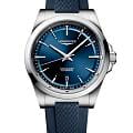 Longines Conquest Automatic (L3.830.4.92.9) — элегантные швейцарские часы, сочетающие классический дизайн и современные технологии. Корпус выполнен из нержавеющей стали диаметром 41 мм, придающим модели прочность и долговечность. Сапфировое стеклоСапфировое стеклоПрочный и надёжный материал из кристалла сапфира синтетического происхождения, характеризующийся особой твёрдостью и устойчивостью к царапинам и повреждениям. с антибликовым покрытиемАнтибликовое покрытиеСлой оксида металла в 0,13-0,3 микрон, благодаря которому стекло часов не бликует и не отражает свет. Антибликовое покрытие уменьшает отражение света в 10 раз, обеспечивая отличную читаемость показателей циферблата. защищает циферблат от царапин и гарантирует превосходную читаемость. Синий циферблат оснащён серебристыми стрелками и метками с люминесцентным покрытиемЛюминесцентное покрытиеПозволяет считывать показания времени в темноте. Производители наносят на стрелки, часовые индексы, безель или поверхность циферблата светонакопительный состав, дающий холодное свечение. , обеспечивающим отличную видимость в условиях низкой освещённости. Механизм L888 с 72-часовым запасом хода обеспечивает высокую точность и надёжность. Ремень из каучука на раскладной застёжкеРаскладная застёжкаТакой тип застёжки используется только на браслетах из металла. Она никогда не раскрывается полностью, происходит разделение на 2 и более частей. Раскладывающая застёжка снизит вероятность потери часов к минимуму. гарантирует комфорт и надёжную фиксацию на запястье. Функциональность дополняется индикатором даты в положении "6 часов". Водонепроницаемость 100 метров делает модель подходящей для плавания и других водных активностей.